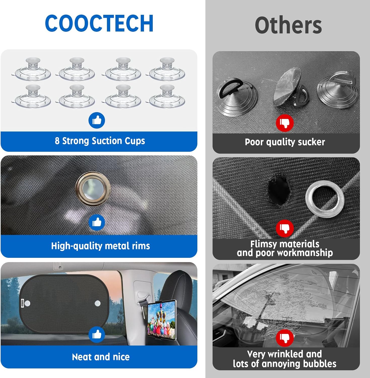 【Premium Materials】Durable Mesh Material and Strong Steel Wire – Rely on COOCTECH’s durable lightweight mesh material and strong steel wire frame for long-lasting performance that can be removed and installed again and again.