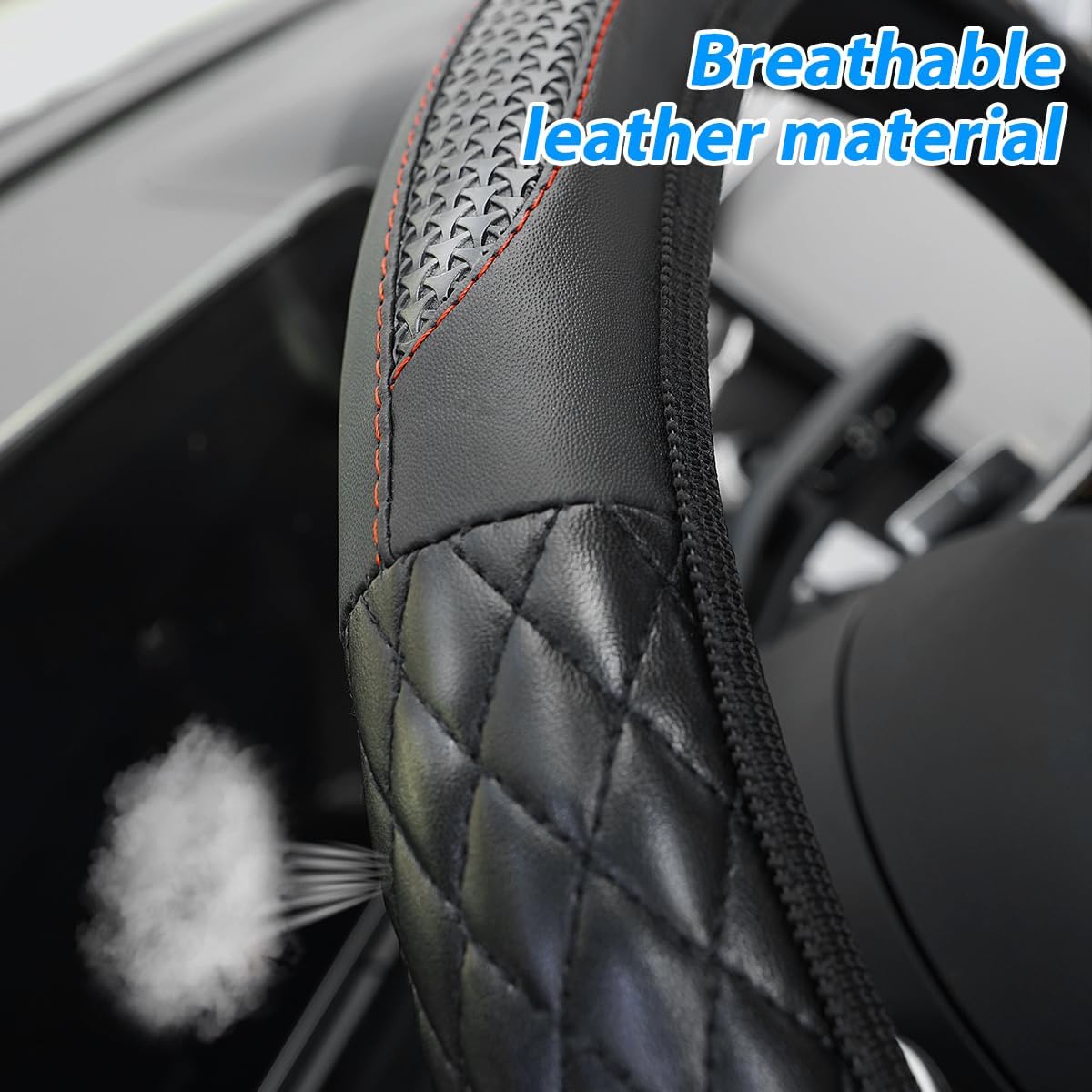 Unique Design: The combination of fish scale pattern and checkered design is unique and different from ordinary steering wheel covers. The surface texture is clear and three-dimensional, which not only brings visual freshness, but also provides extra friction when gripping, enhances the control feel, and shows the owner’s personalized taste at the same time.