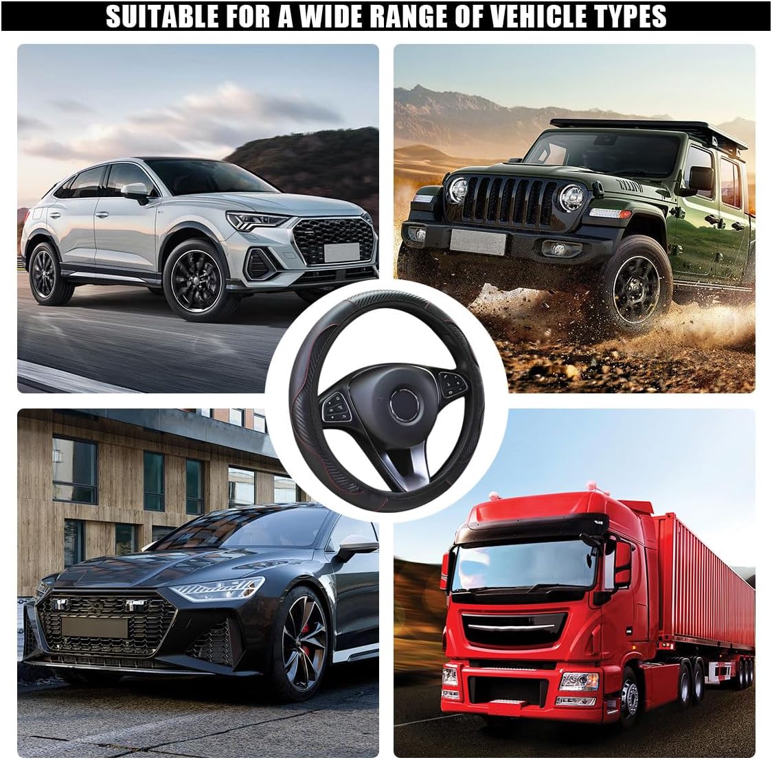 【Carbon Fiber Leather】: The car steering wheel cover is made of high-quality carbon fiber leather, soft, breathable, non-slip, and wear-resistant. It can enhance the touch feeling and protect the steering wheel.