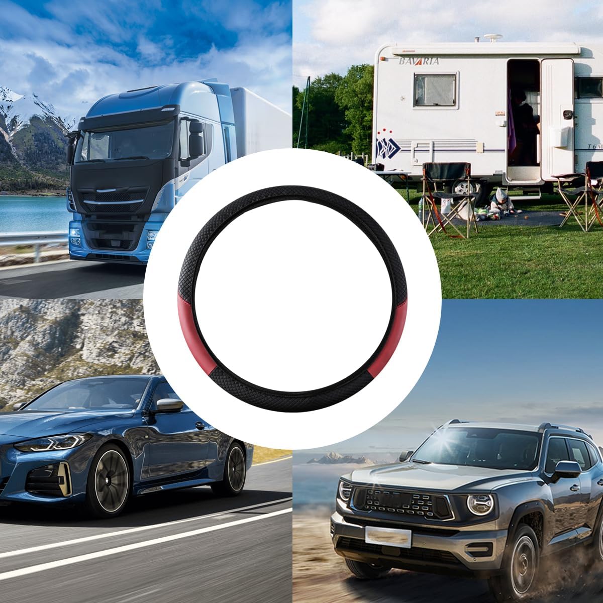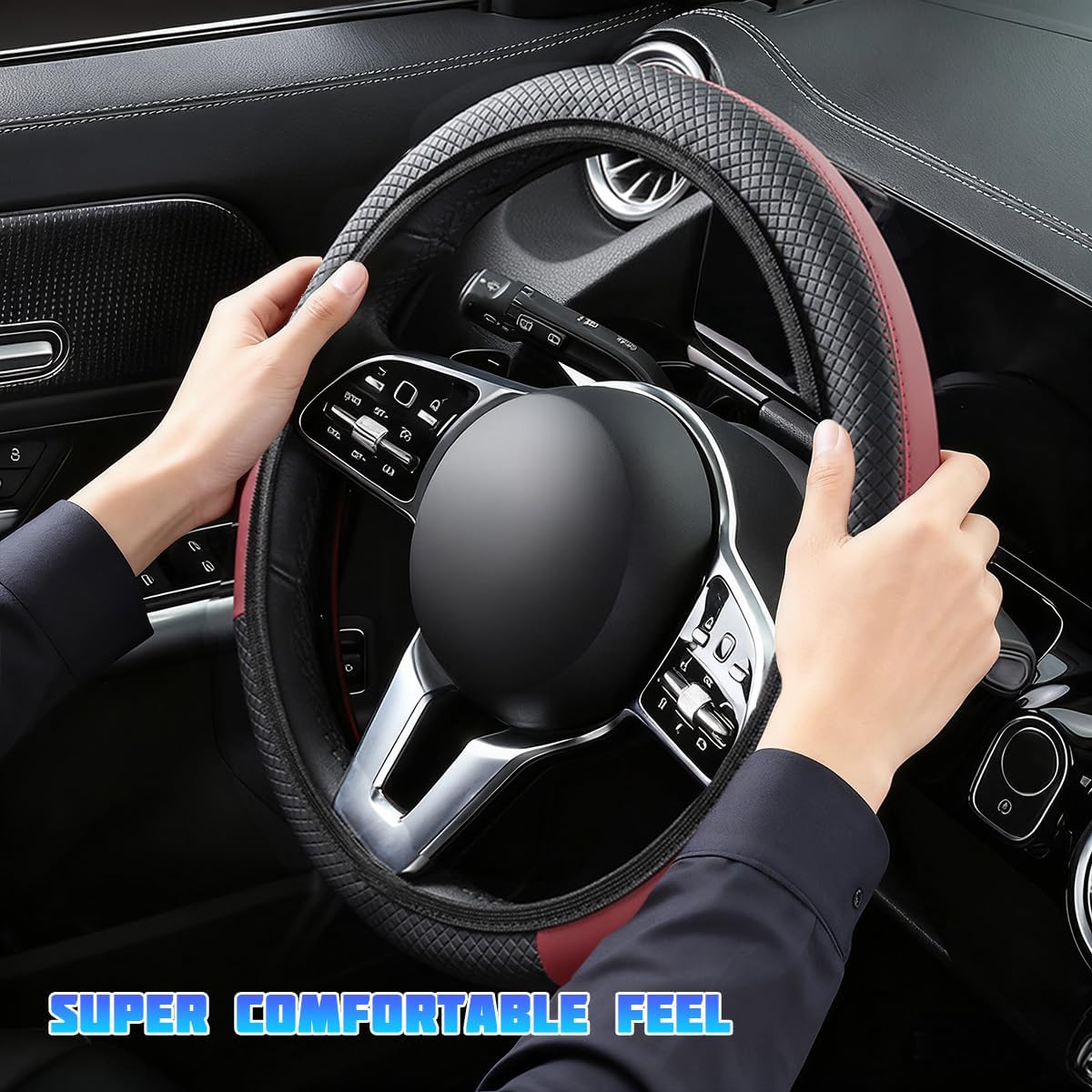 Premium Material: This elastic steering wheel cover is meticulously crafted from high-quality leather. Its surface is finely textured and smooth to the touch, effectively alleviating driving fatigue during long commutes or road trips. Unlike synthetic fabrics that trap heat, genuine leather offers exceptional breathability – promoting air circulation to keep hands cool in summer and warm in winter, effectively preventing sweaty palms or chilly discomfort.