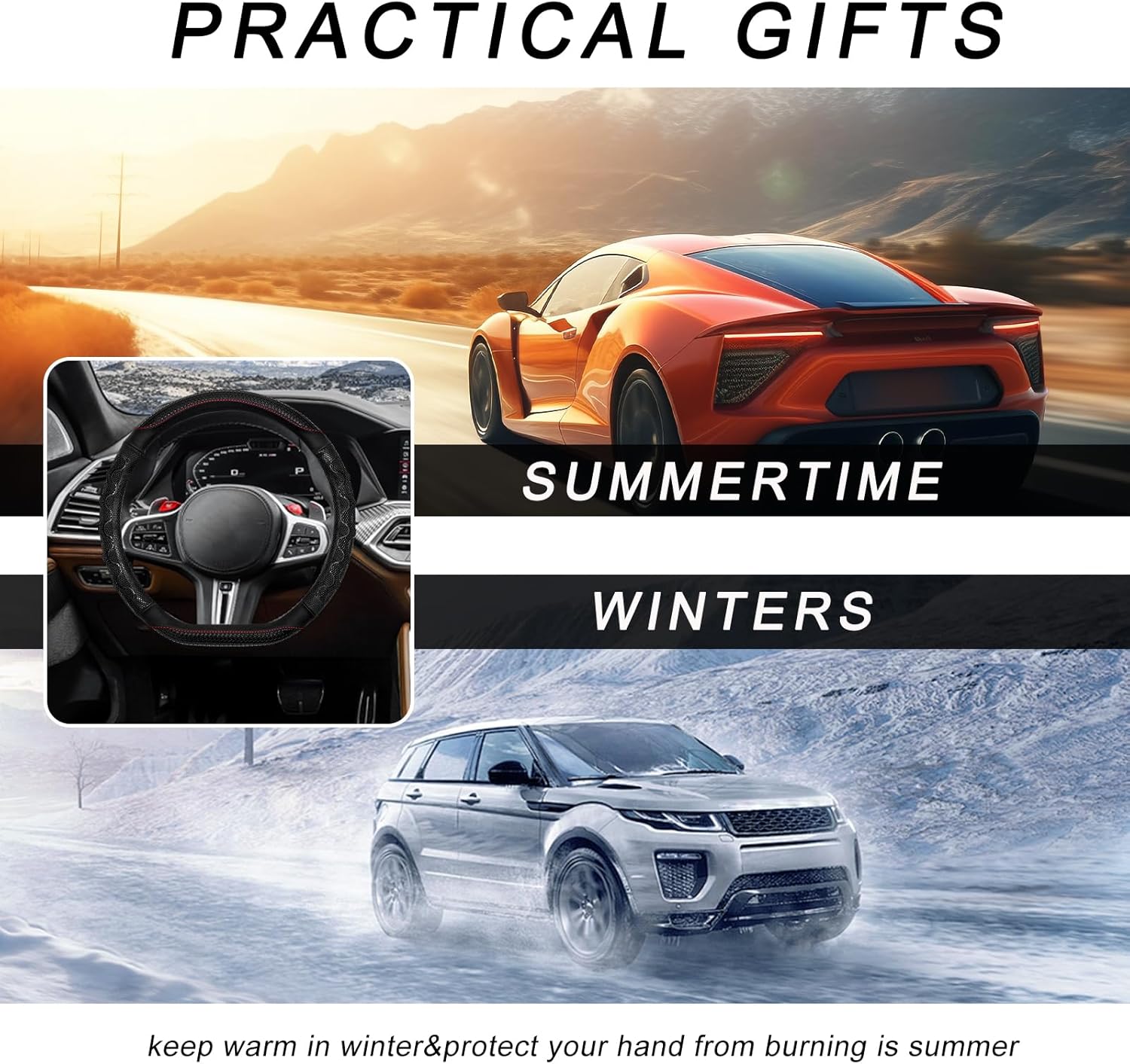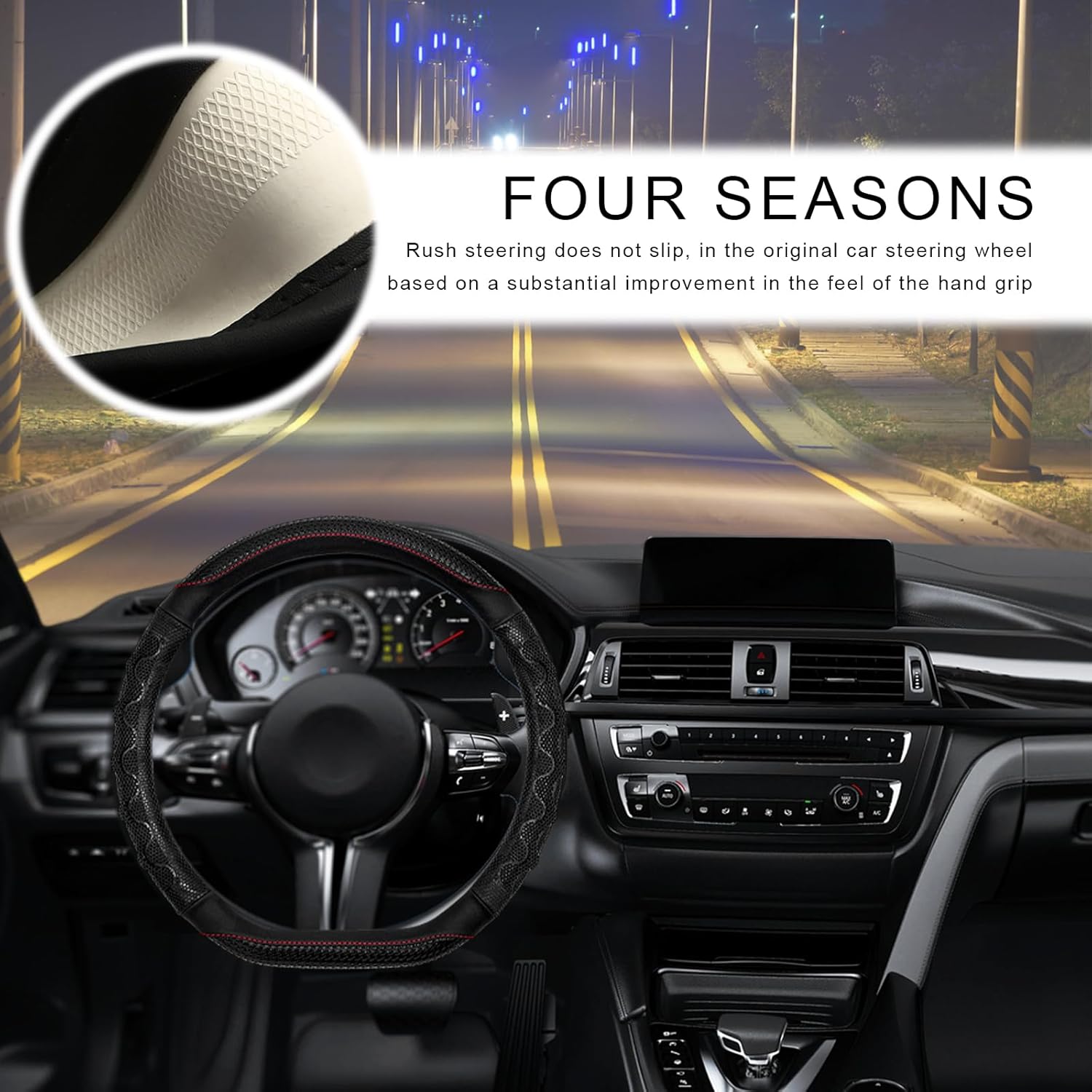 Durable Material: Crafted from high-quality leather, this steering wheel protector offers excellent wear resistance and maintains its elegant appearance over time. The breathable material ensures optimal comfort in both summer and winter, offering enhanced durability for extended protection