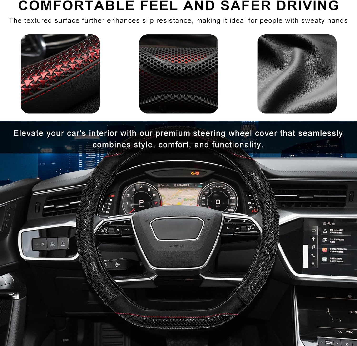 -Our 3D honeycomb steering wheel cover ensures you maintain full control of your vehicle in all driving conditions, offering peace of mind on every journey.