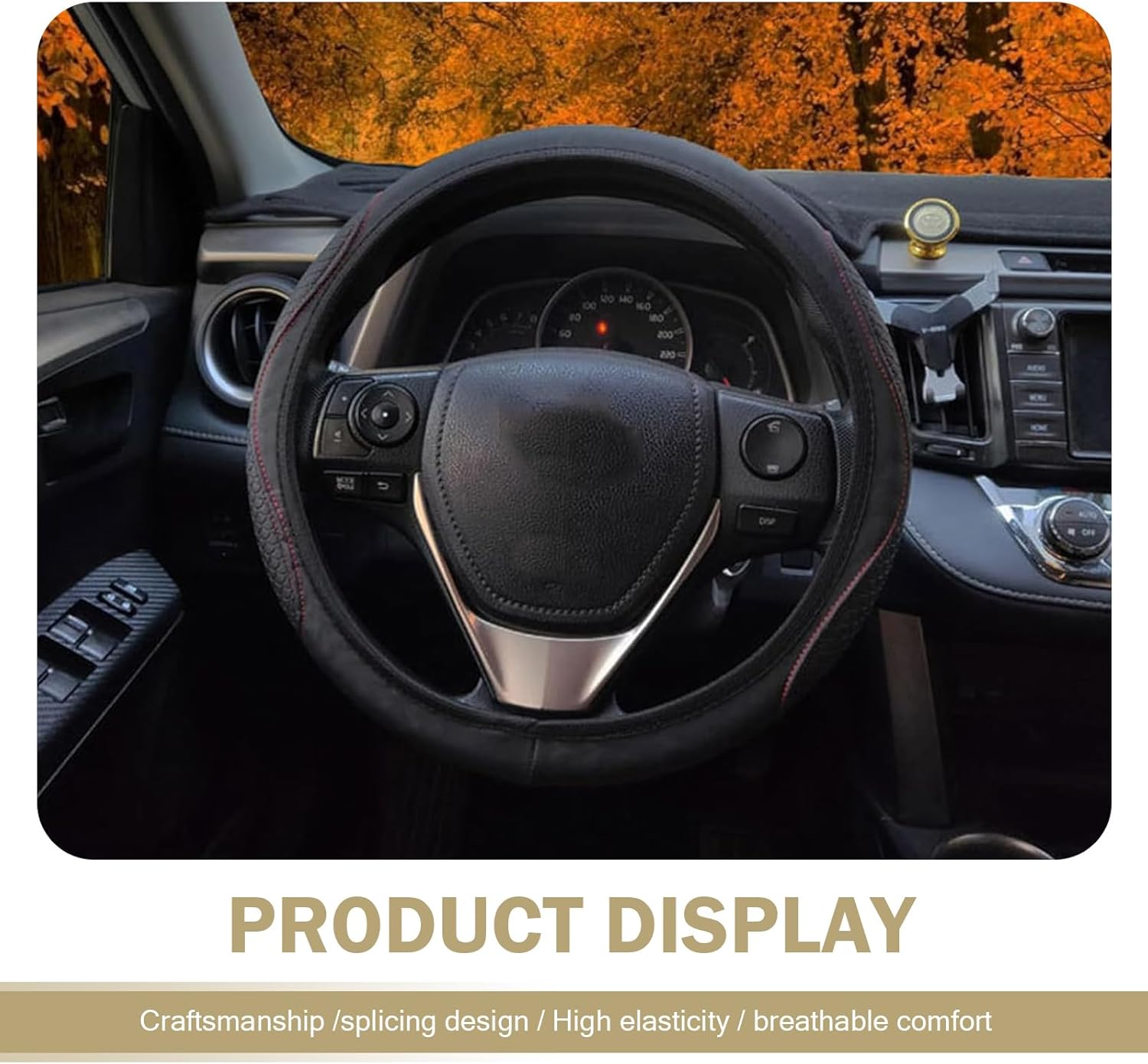 Car Steering Wheel Cover, Microfiber Leather Steering Wheel Cover,Anti-Slip Breathable Steering Wheel Protector,15 inch Universal for SUV, Truck, Van (Black&Red)