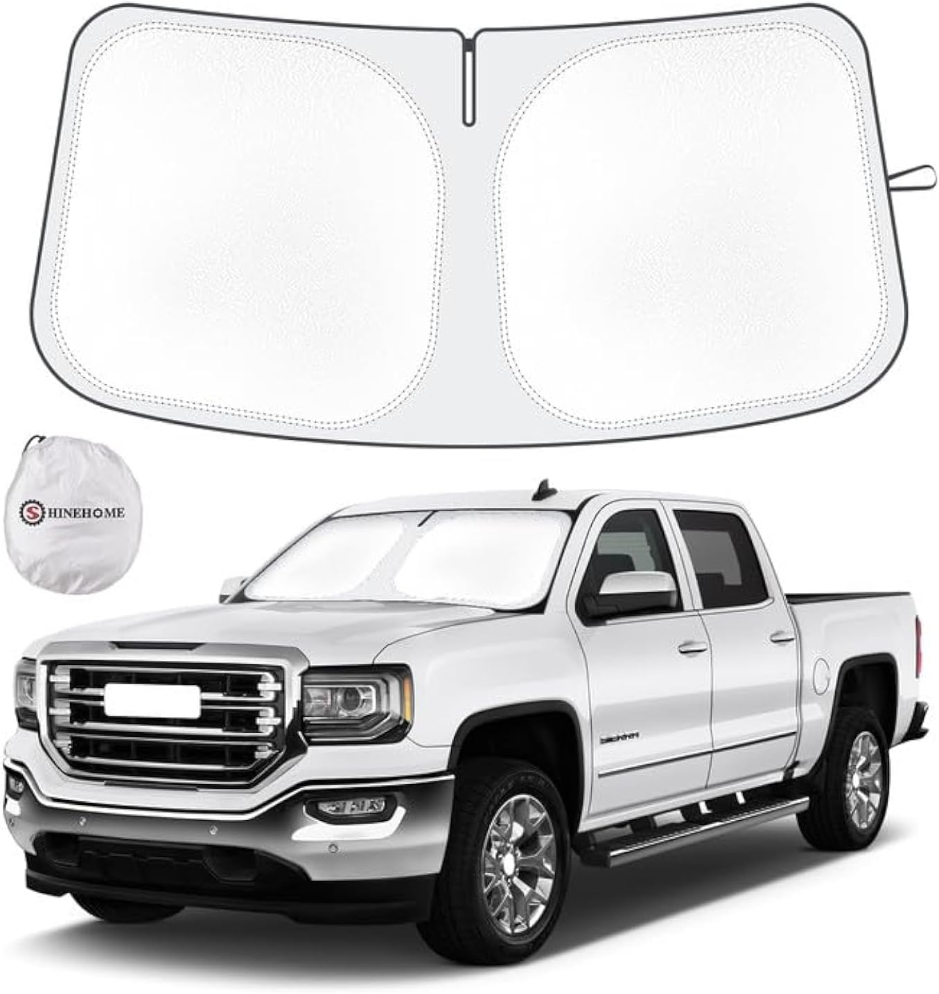🚗【For GMC Sierra Windshield Sun Shade】SHINEHOME windshield sunshade is specially designed for 2019 2020 2021 2022 2023 2024 2025 2026 chevy silverado gmc sierra 1500 2500HD 3500HD accessories windshield sun shade. The chevy silverado gmc sierra sun shade silverado sun shade can effectively protect you and your truck from harmful UV rays, keep your Chevy Silverado GMC Sierra truck cool, and protect the truck interior.