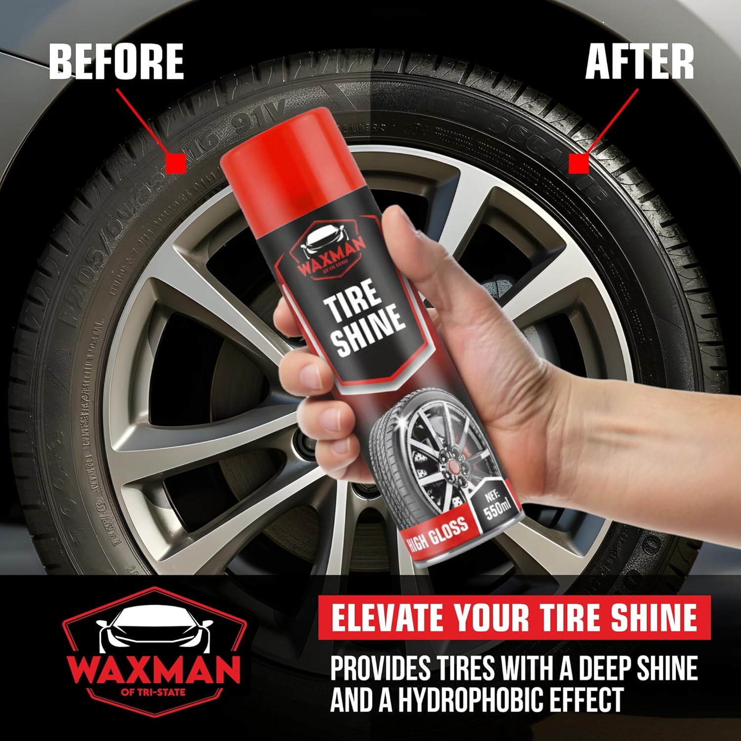 Car Tire Shine Spray – Deep Wet Look Car Tire Shine, Long-Lasting Hydrophobic Non-Greasy Tire Dressing – Safe for Cars, Trucks, Motorcycles, RVs – 18.6 fl oz