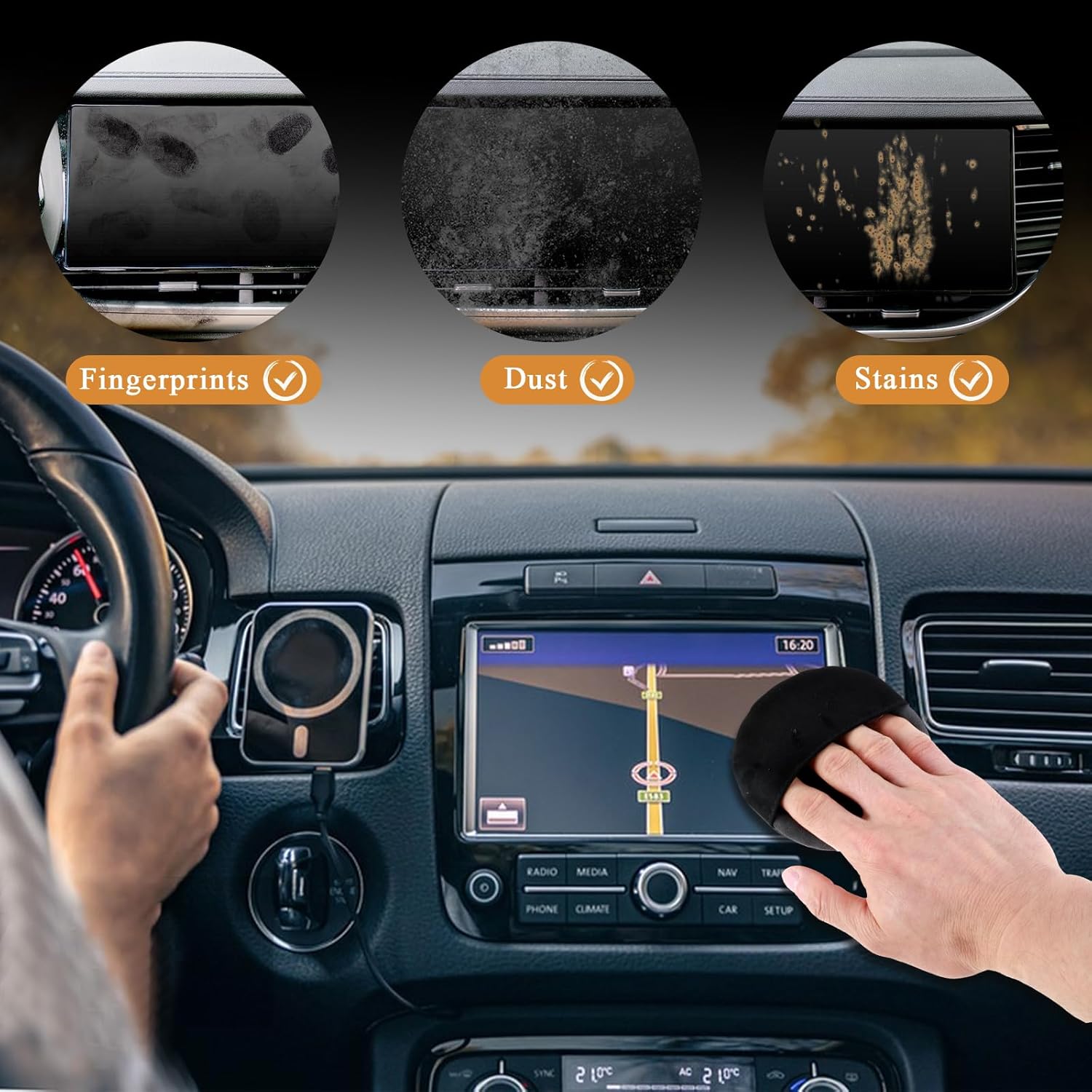 Multi-Purpose Cleaning: this reusable car screen cleaning pad effectively eliminates dust, fingerprints, and stains without causing any scratches or harm to your screens, lenses, or surfaces. It’s the perfect solution to keep car screens, computer monitors, mobile phones, tablets, and more looking clear and bright.