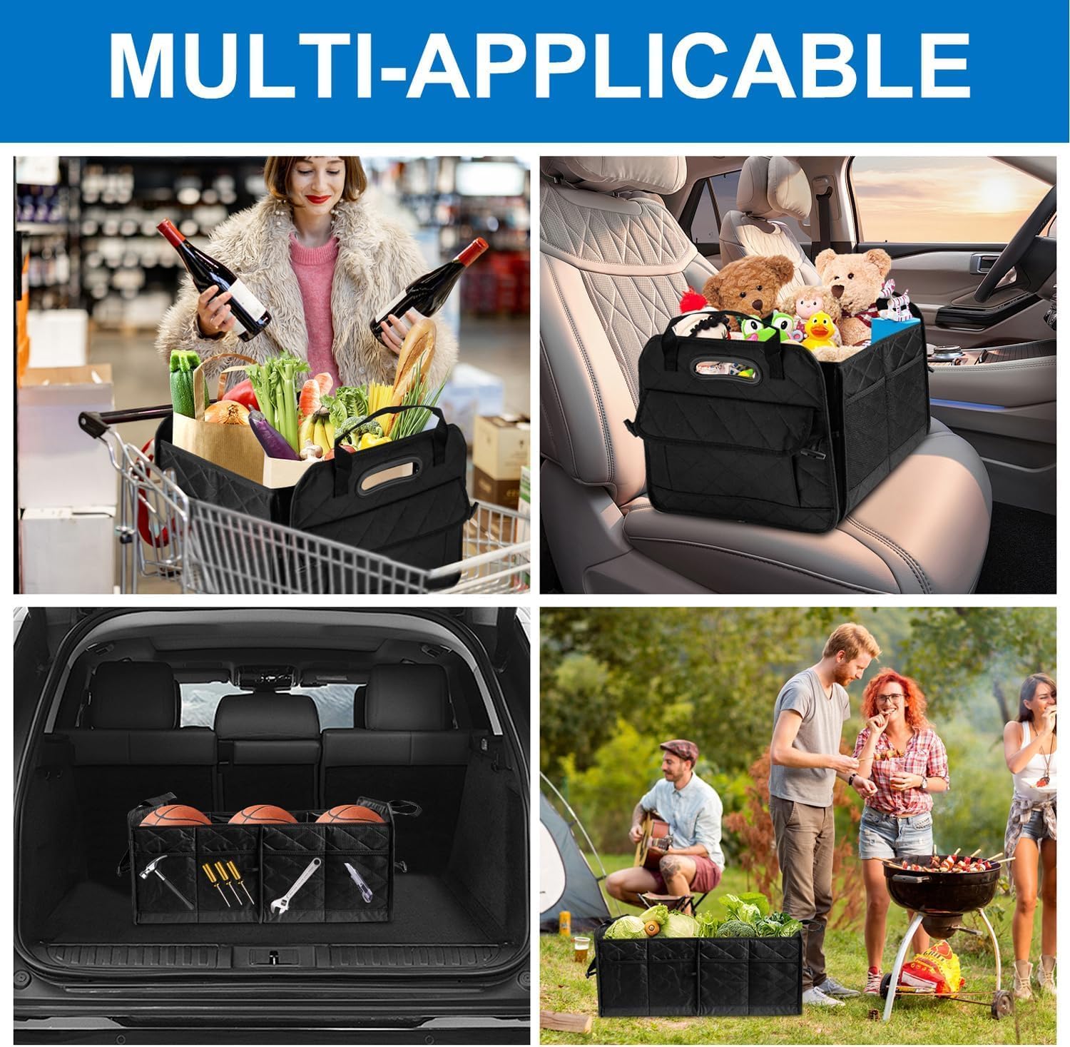 75L Large Capacity: This 75L trunk organizer measures 22.5”x15”x13.5”. Its spacious compartments keep your groceries, sports gear, and emergency kits neatly organized, making every trip clutter-free. Ideal for road trips, camping, and daily errands.