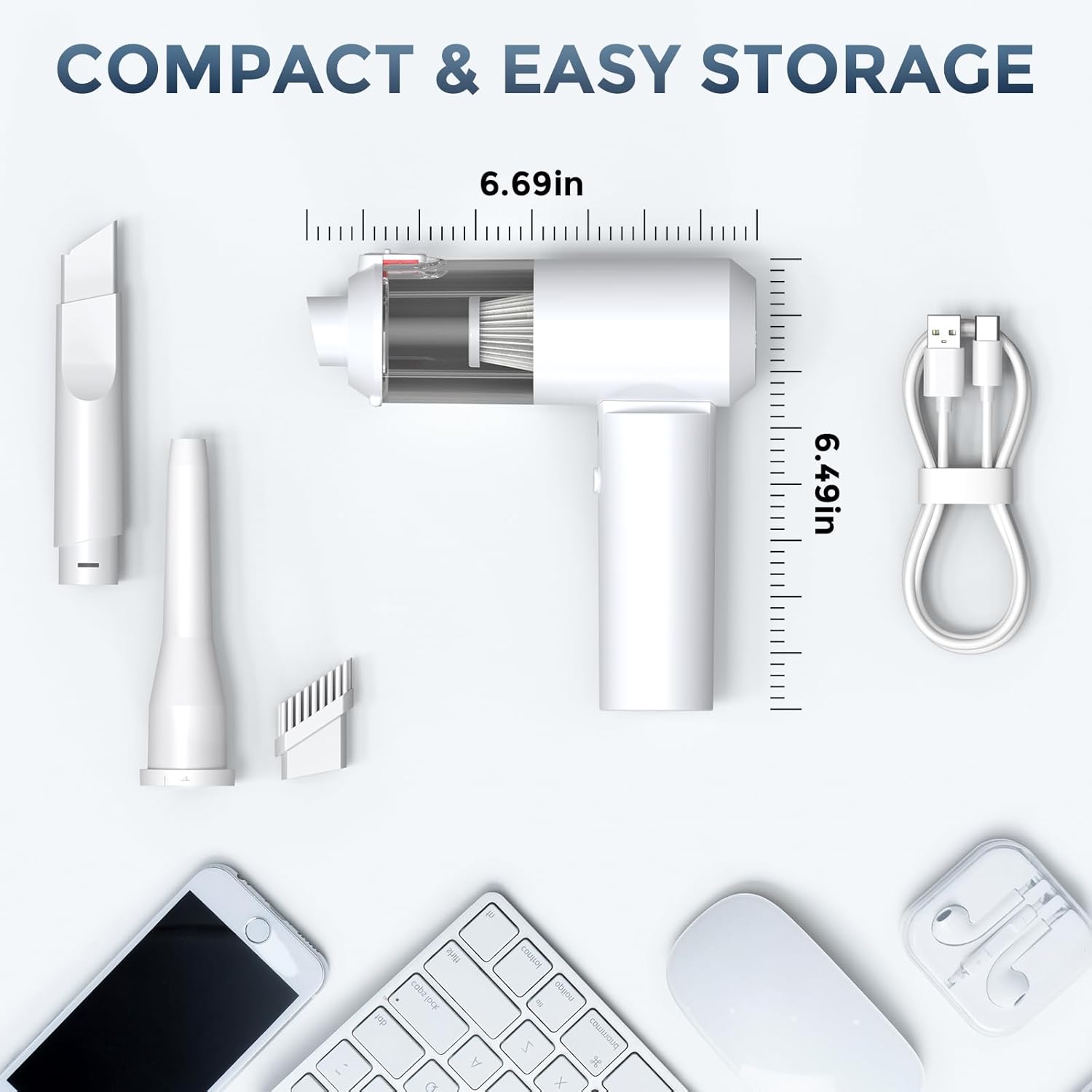 2-IN-1 FUNCTIONALITY: Our cordless handheld vacuum offers dual capabilities—both suction and blowing. Its powerful performance leaves no dust hiding anywhere, refreshing your belongings.