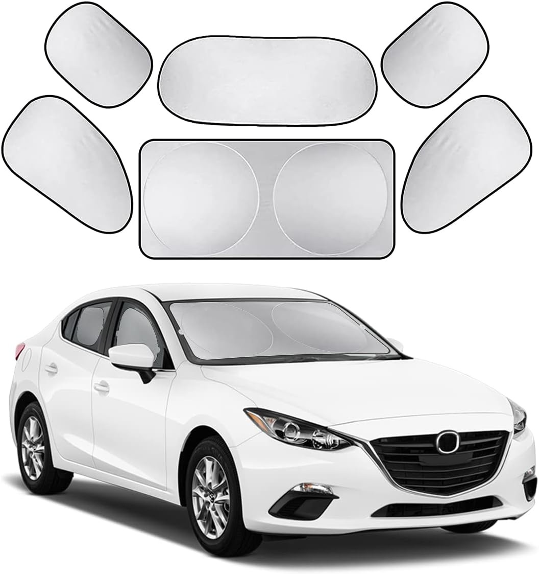 Car Window Shade, 6Pack Set Auto Sun Shades for Side Window Front and Rear Windshield with Storage Pouch for Car, SUV, Van, Truck, Full Sun Protection, Block UV Rays, Keep car Cool (59.5″x27.6″/6PCS)