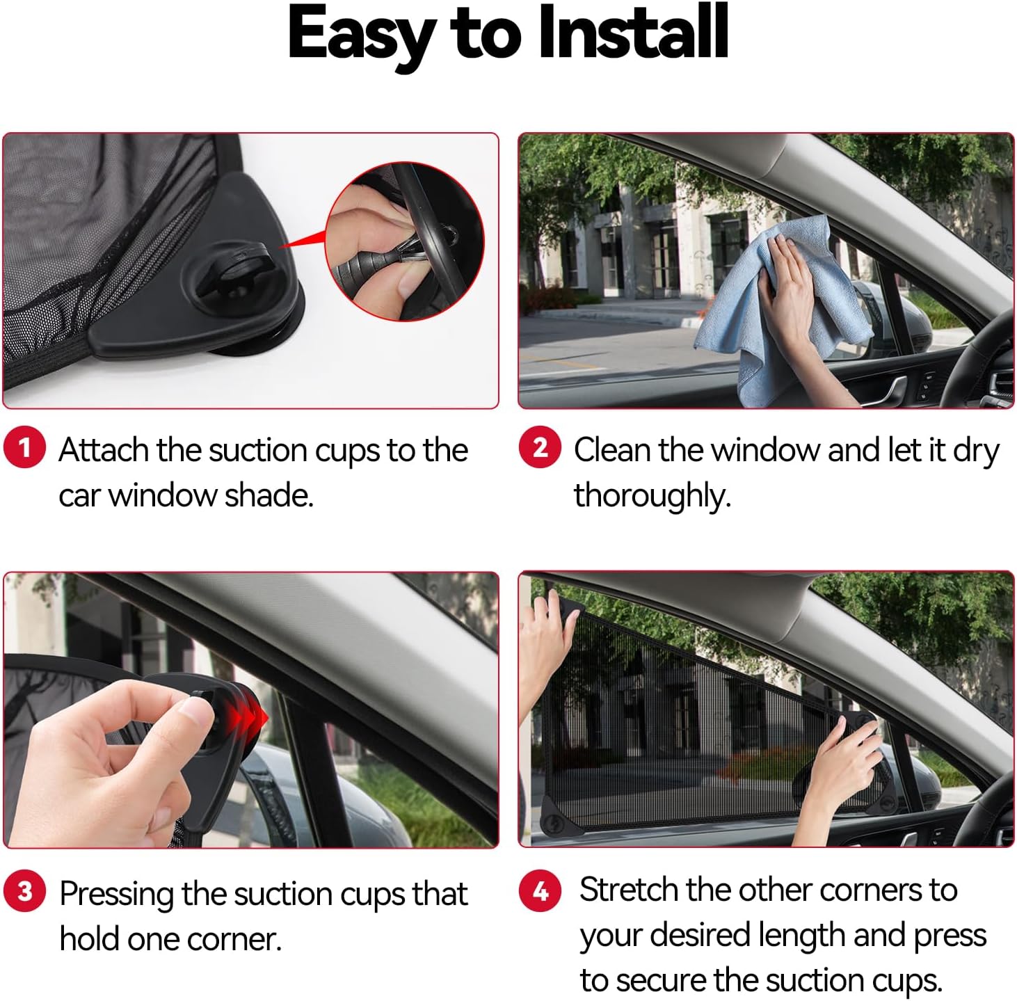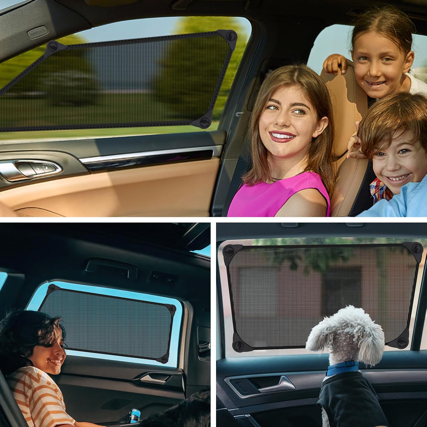 【Visibility & Safety】Designed with a semi-transparent mesh, these shades block sun glare while still allowing you to see clearly through the windows. This ensures safety on the road without sacrificing visibility, perfect for car journeys.