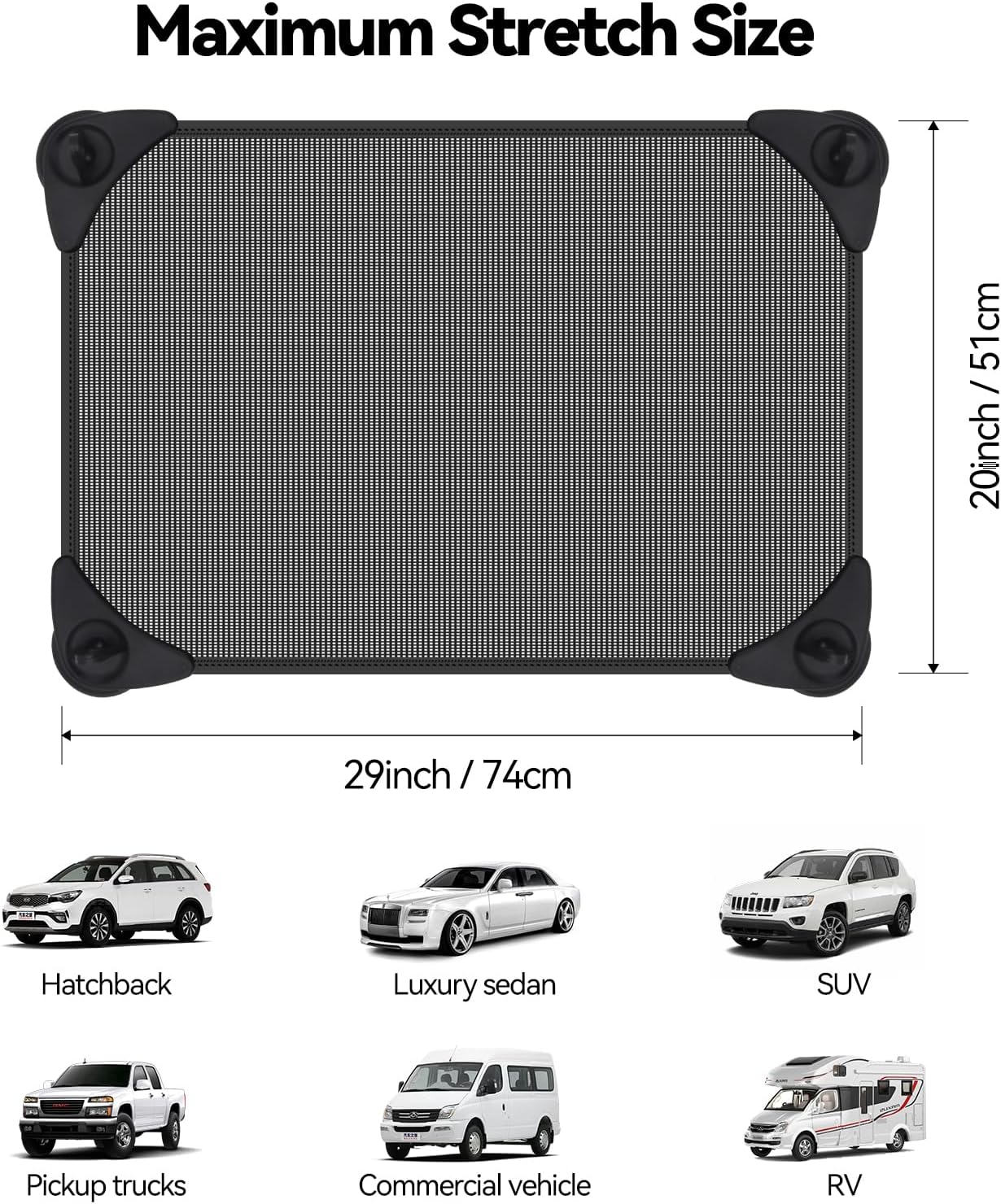 【Universal Fit】Our automotive window shades are retractable and fit most vehicles, including cars, SUVs, trucks and RVs. These shades are sized to cover side windows, front windows, and rear windows, offering optimal coverage for most types of vehicles.