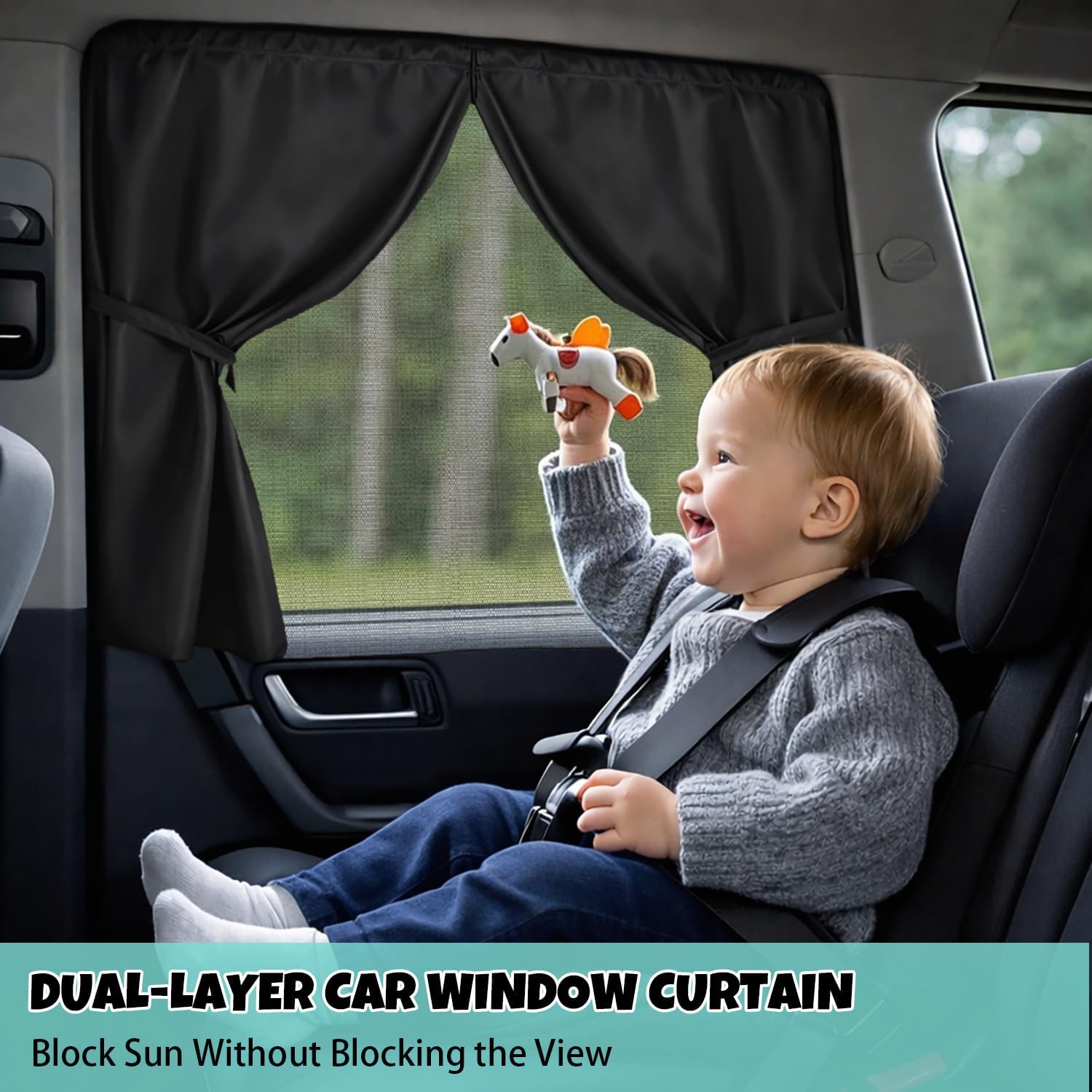 Ideal for Road Trips and Travel Comfort: Our double-layered car shades for back windows baby are ideal for your road trips. When you want to enjoy the view outside, simply roll up the blackout layer and tie it with the built-in rope. The remaining semi-transparent fabric still blocks some sunlight and UV rays, while allowing you to see clearly without any glare. It’s the perfect addition to your baby travel gear, offering comfort and protection for both you and your little one.