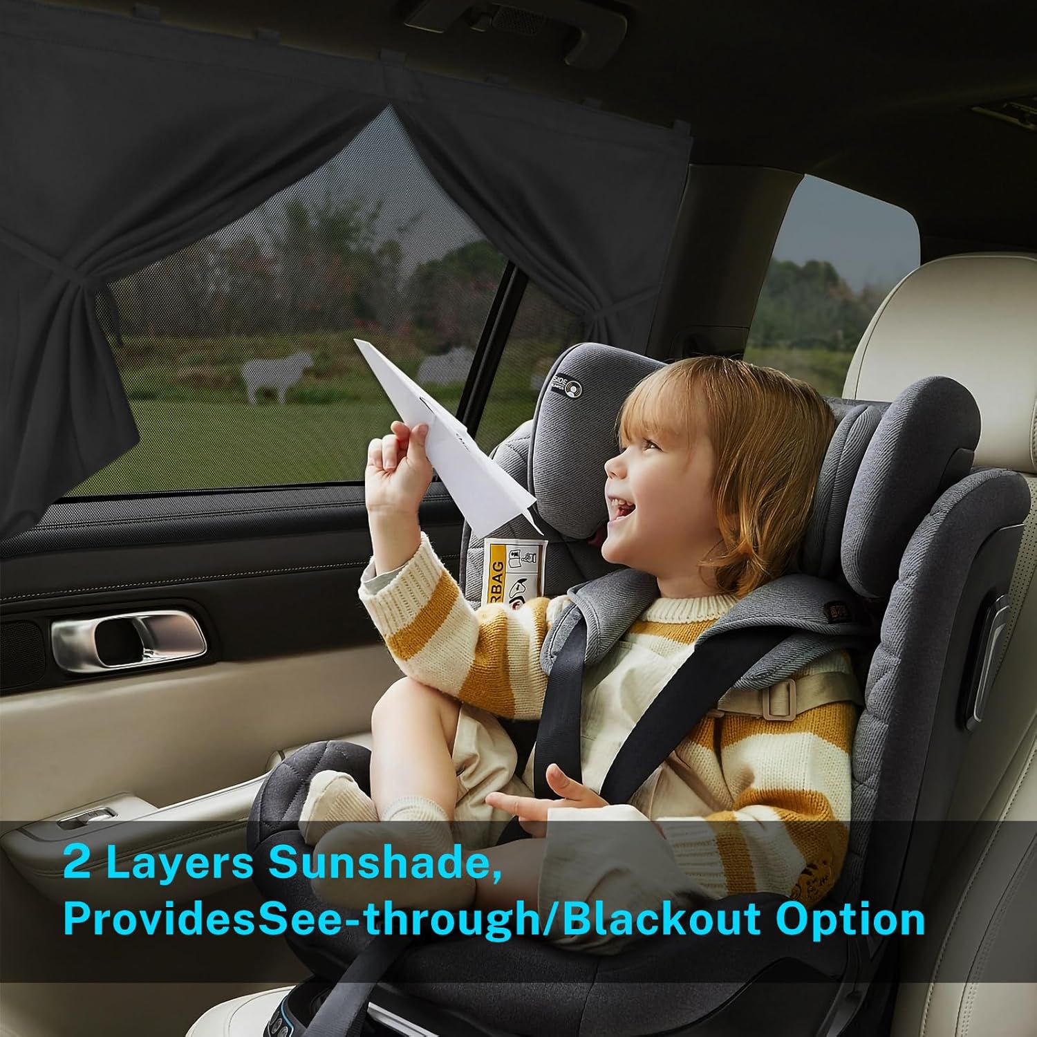 Car Window Shades, Double Layers Magnetic Car Sun Shade for Baby, Blackout/See Through Back Side Window Covers, Auto Window Curtains for UV Protection