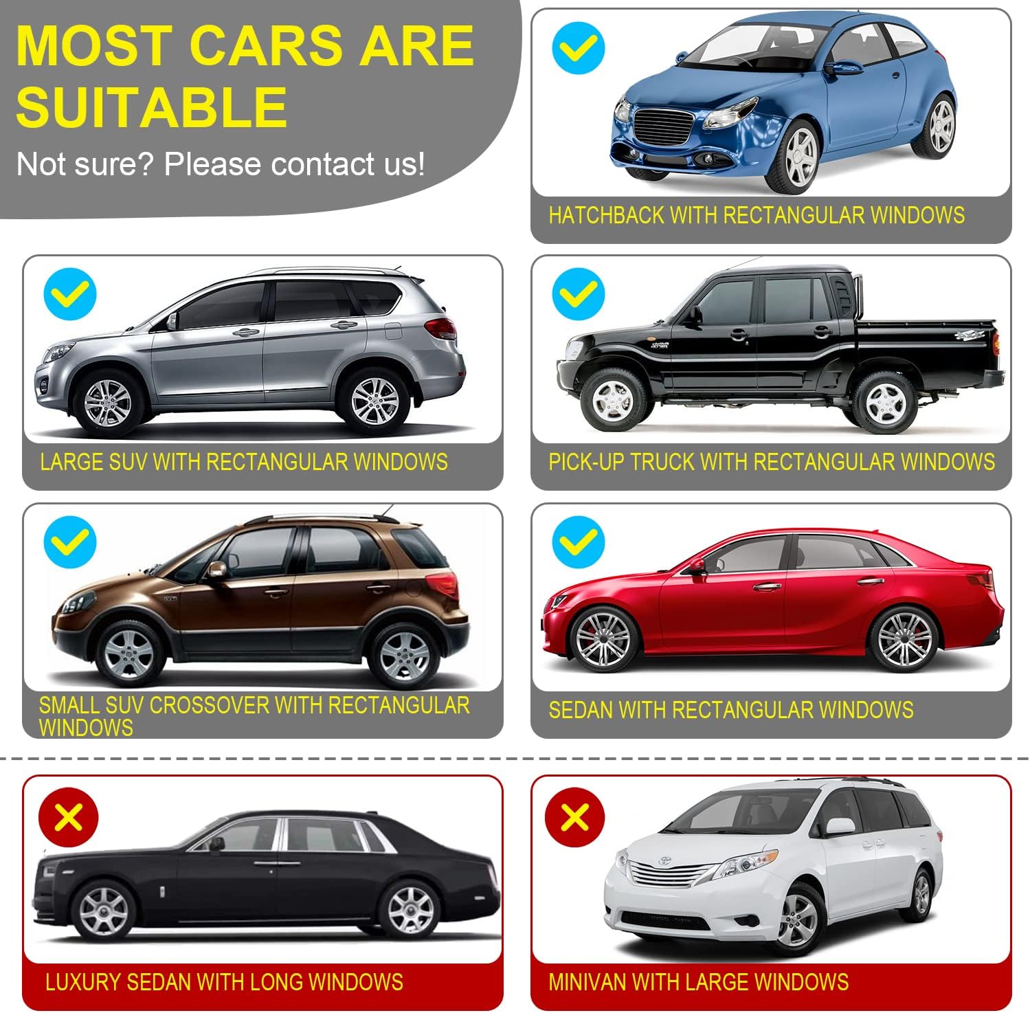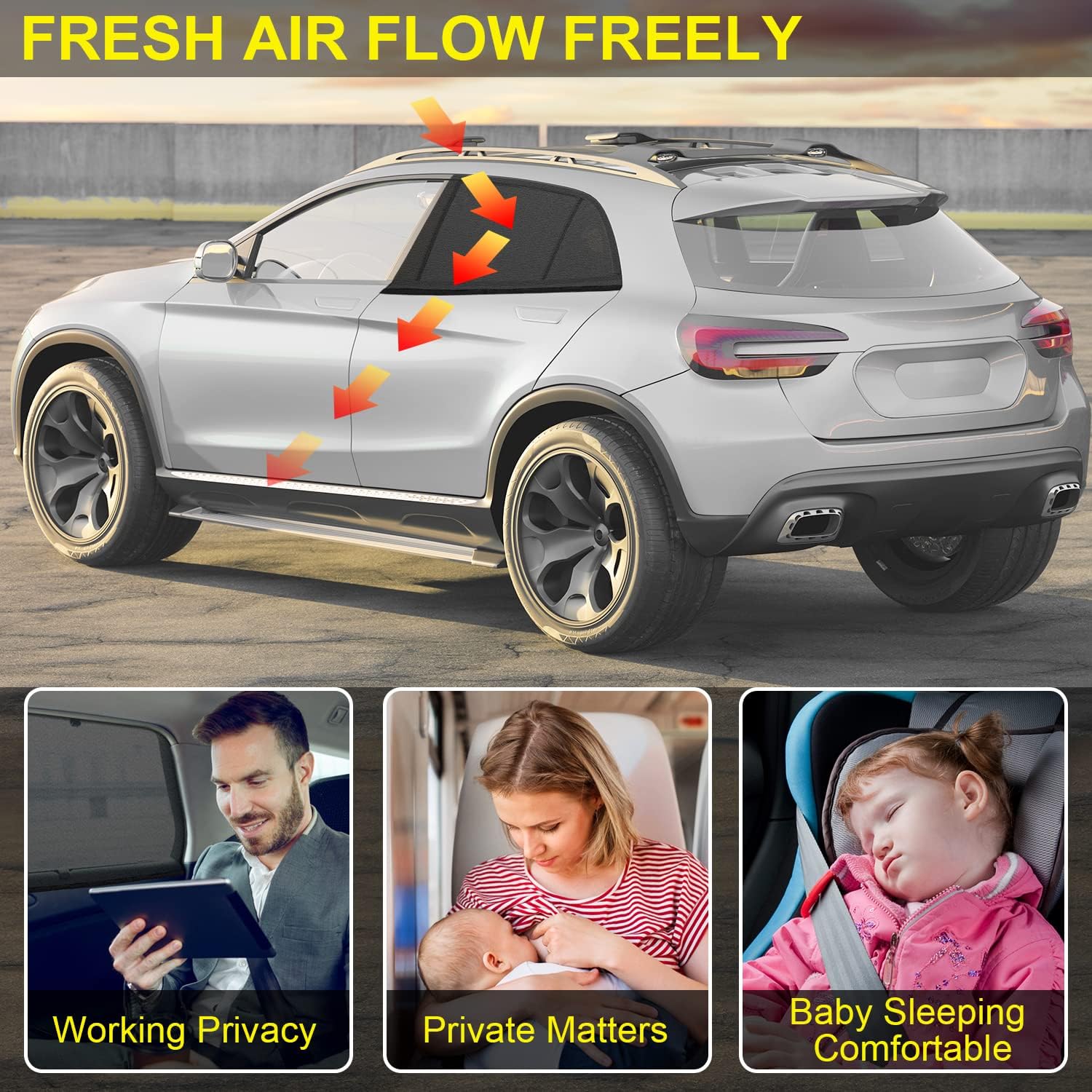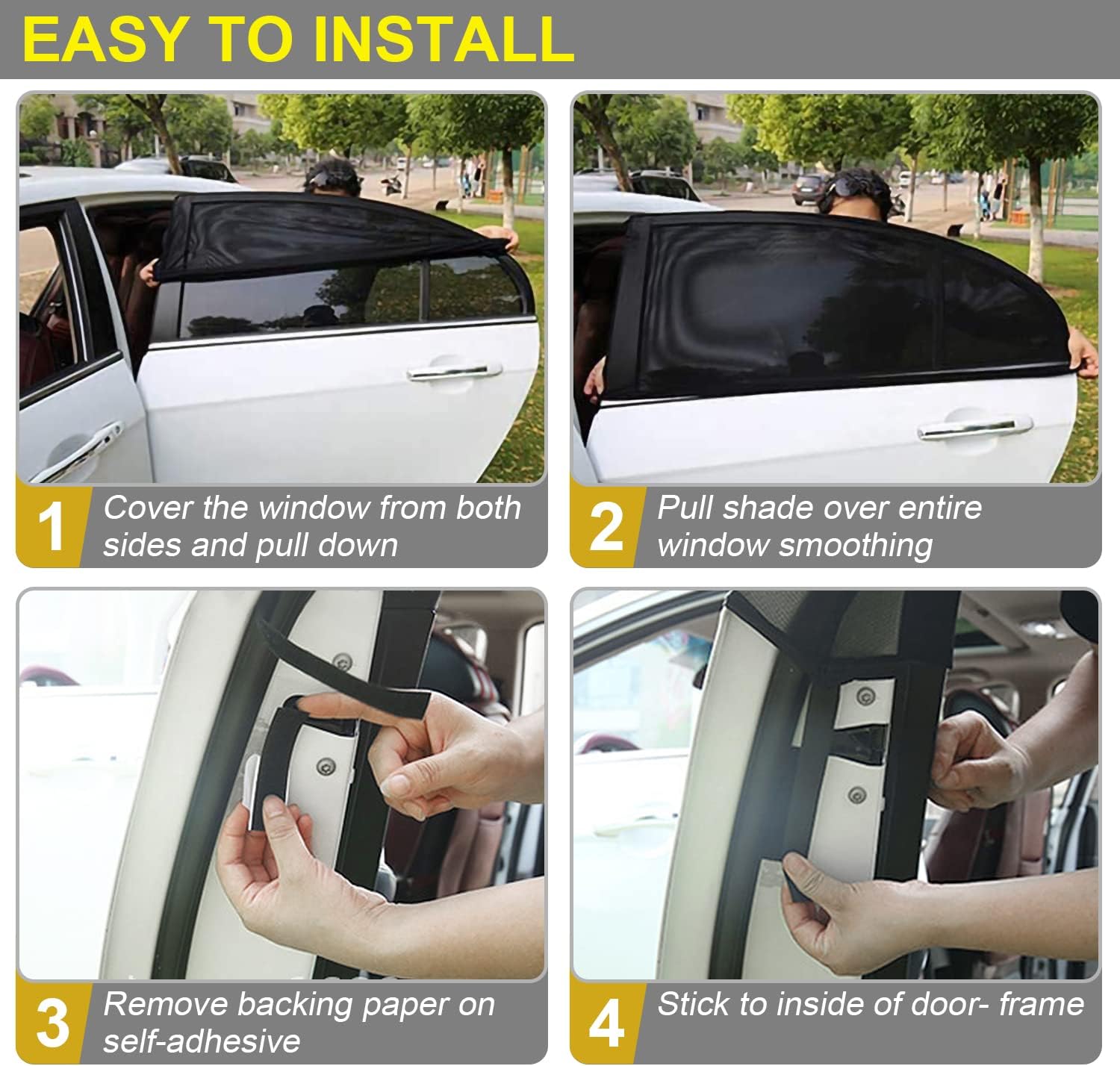 ✅Windows Open Freely & Fresh Air In: Installed on the interior of the car rear window frame, does not affect freely raise and roll down the windows. Breathe in fresh air and enjoy beautiful view out side while you enjoy the shade.