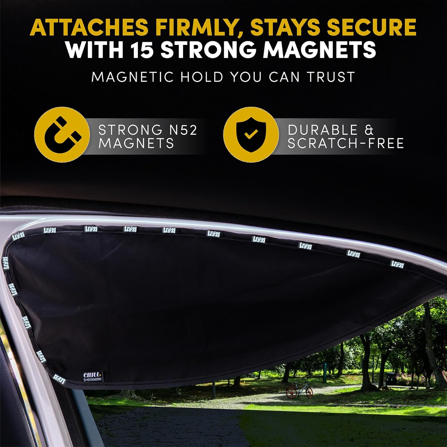 Strong Magnetic Attachment (16 Magnets) – Keeps the car side window sun shade securely in place, even with an open window, allowing fresh air while staying protected.