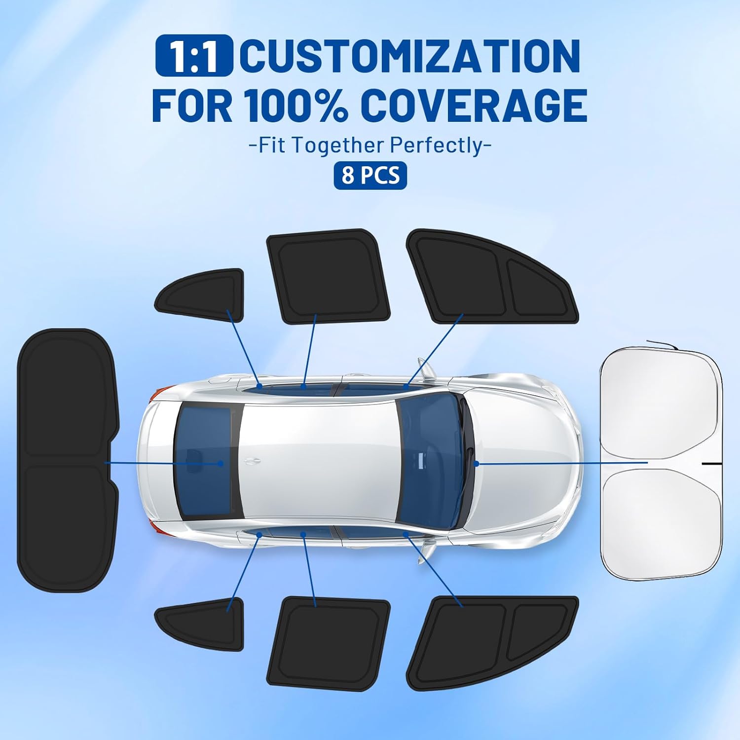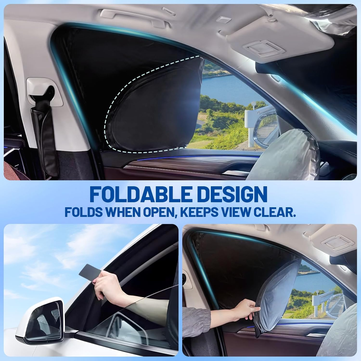 Quick Installation and Compact Storage: No tools required—simply pop the shades into place for a secure fit. When not in use, each window blackout shade fold neatly into a compact pouch, perfect for storing in your vehicle’s door pocket or glove compartment