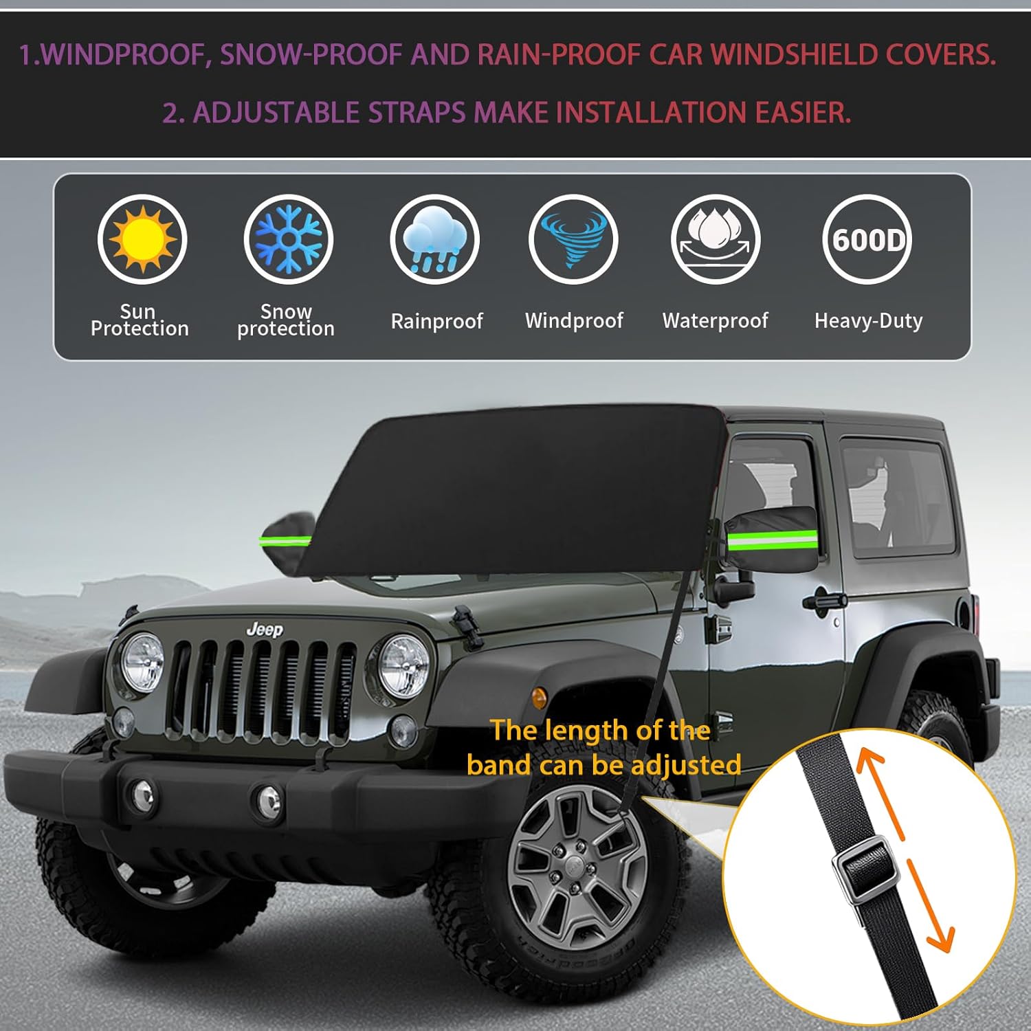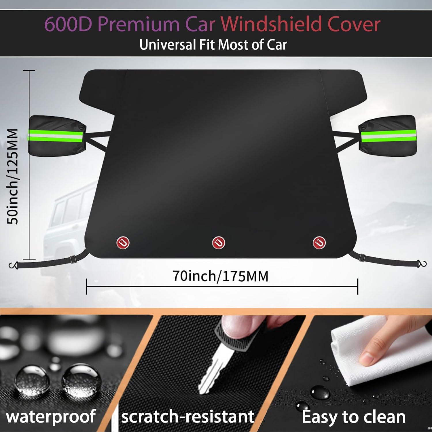 【600D Heavy-Duty & Super Waterproof】HQcontL Car Window Cover for winter are made of premium 600-density oxford fabric, Provides super strong waterproof and antifreeze properties. Compared with PVC type covers, This heavy-duty car snow cover are more breathable and softer, hard to be torn, And also more environmentally friendly!