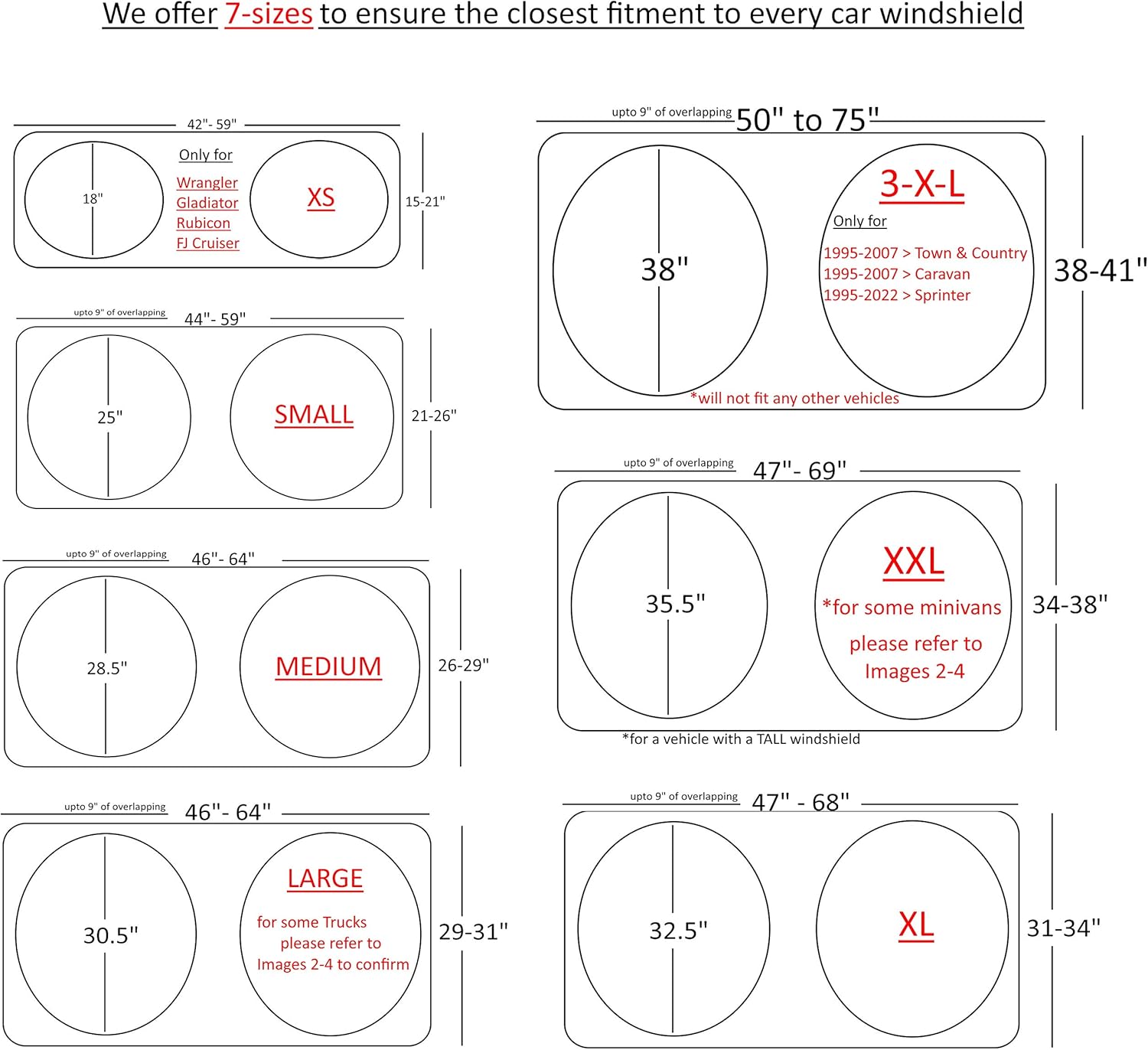 SIZE CHART > find correct size Car Windshield Sunshade (Images 4-6) for your Vehicle SUV Automotive Interior Accessories