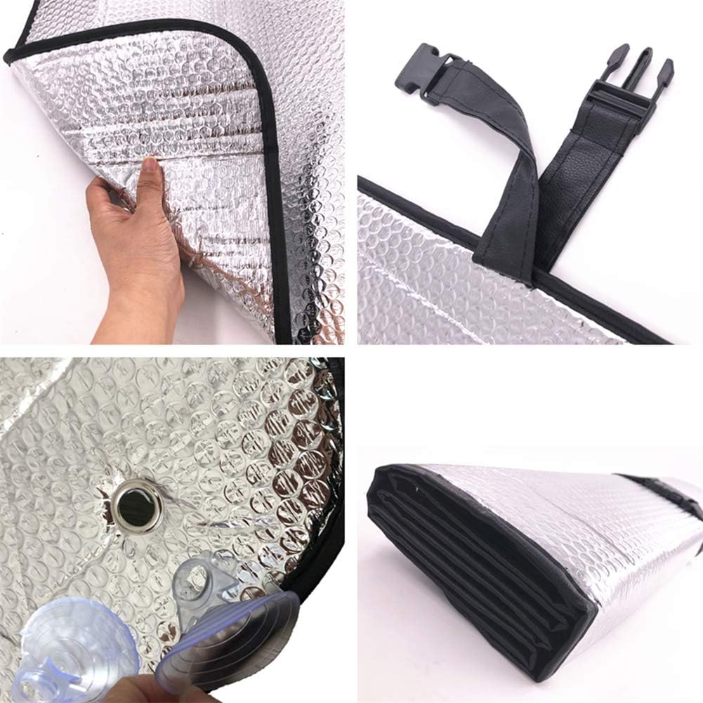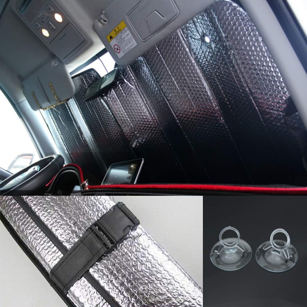 ★ FITS MOST CARS: The Sun Shade For Car Windshield Fits Cars With a Front Windshield of Approximately 27.5 in H x 58 in W,Fits The Windshield Using The Rear-View Mirror and Suction Cup as Support.Make Sure You Measure Your Windshield to Ensure You Get The Right Size.