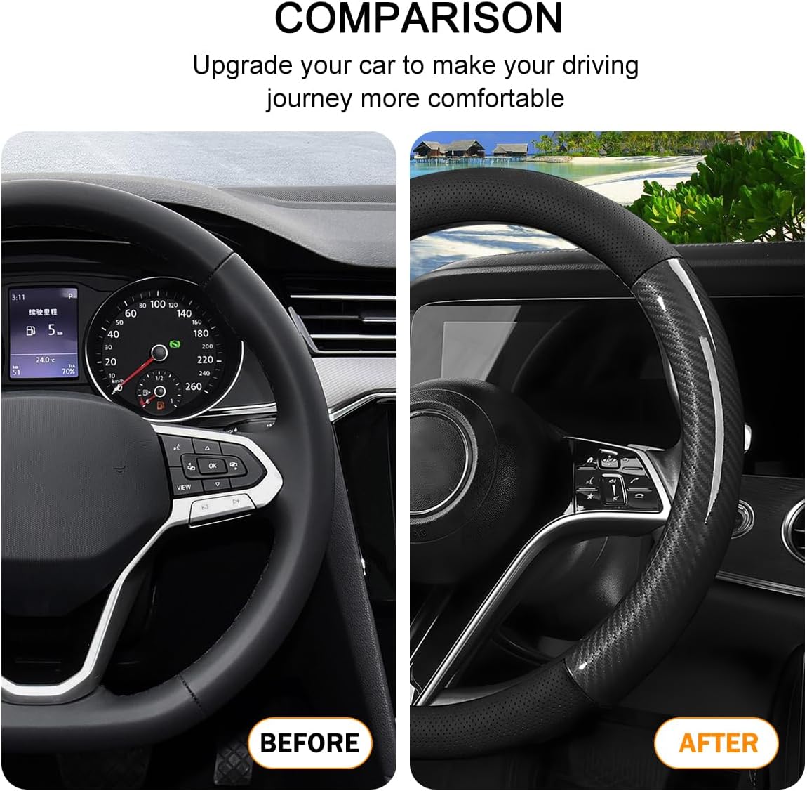 -Easy Installation: This steering wheel cover is extremely easy to install, requiring no tools. First, ensure the steering wheel surface is clean and tidy. Then, properly position the cover and gently press it onto the steering wheel with your hands until it fits snugly.
