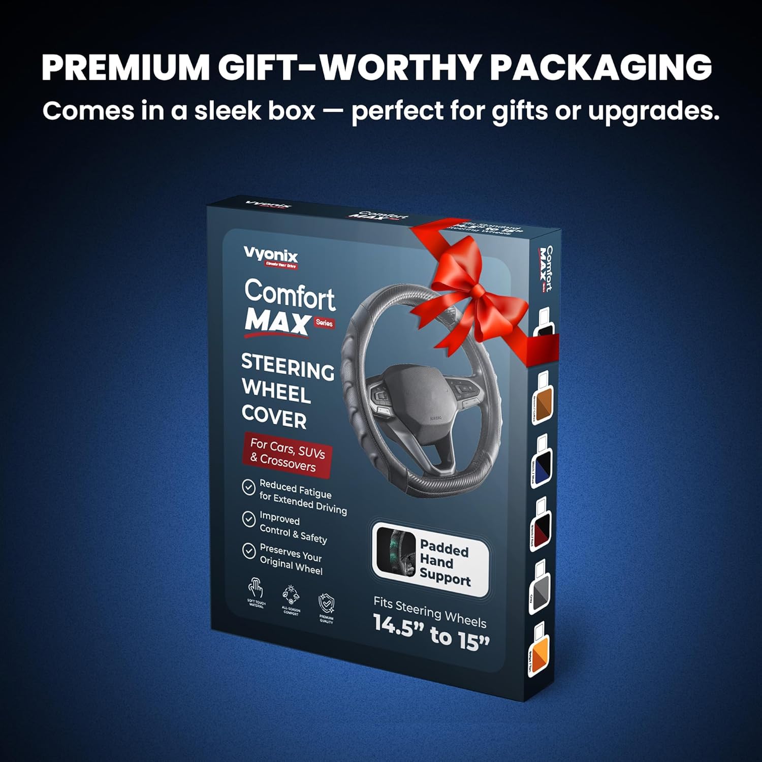 Learn how to quickly and easily install your ComfortMAX steering wheel cover with this step-by-step video. Designed for a snug, non-slip fit, our cover stretches securely over wheels from 14.5″ to 15.5″ with no tools required. Get a custom look and premium grip in under 5 minutes.