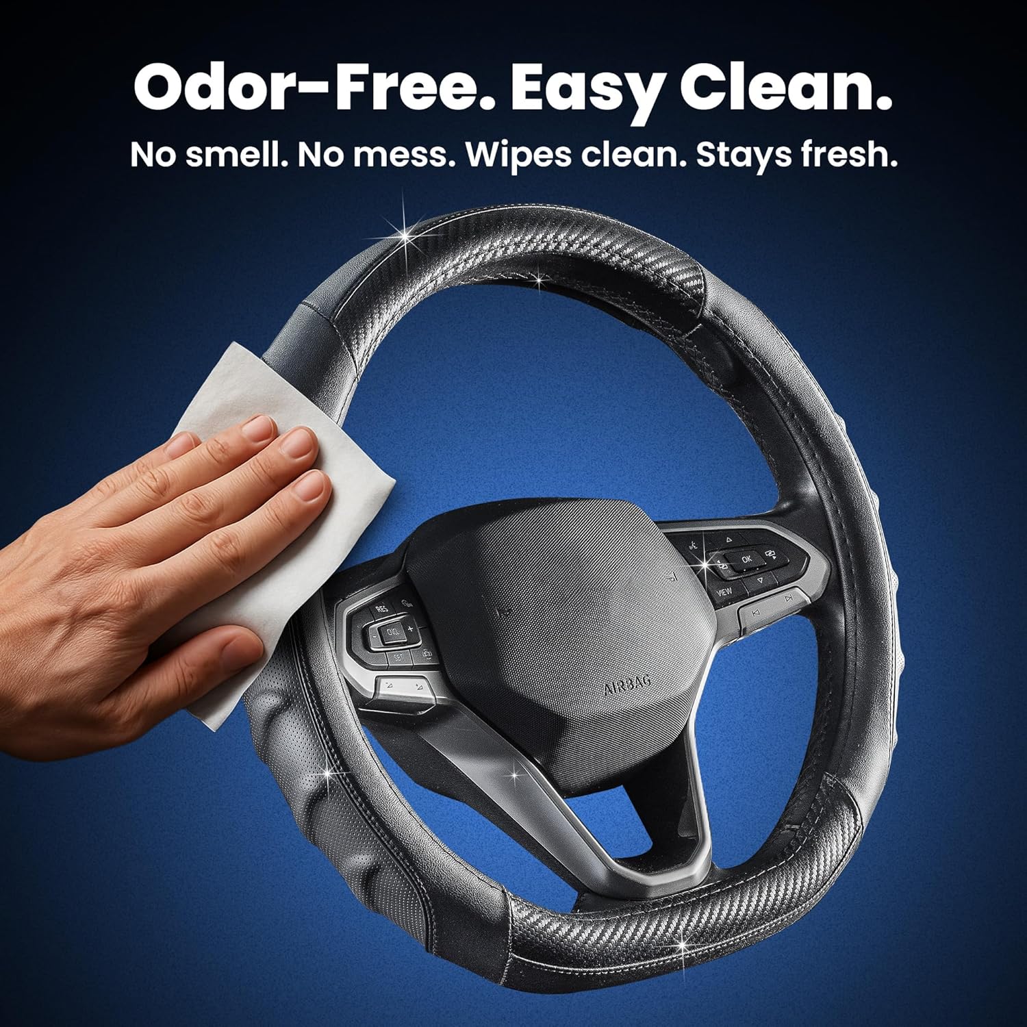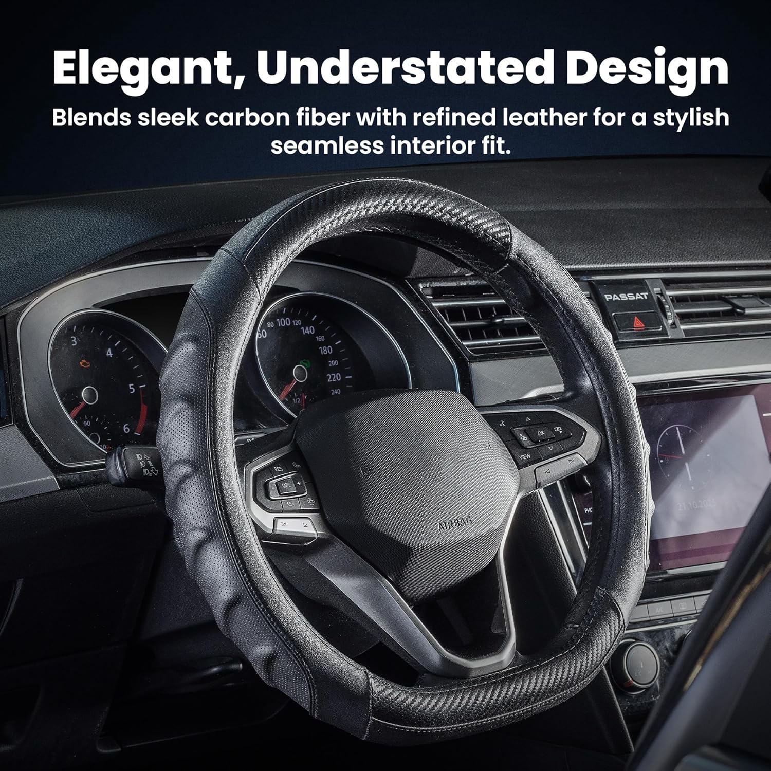 [Durability & Protection] Reinforced stitching and a non-slip inner ring keep this carbon steering wheel cover secure in all conditions. A racing steering wheel cover built to outlast generic options.