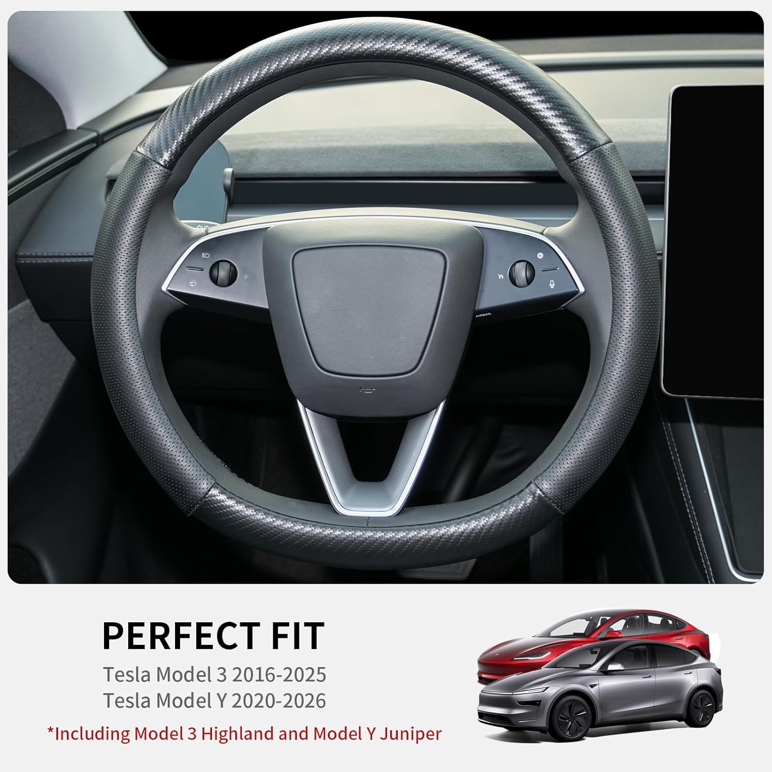 【PERFECT FIT】Compatible with All Tesla Model 3 Model Y steering wheel. Fits like Gloves!