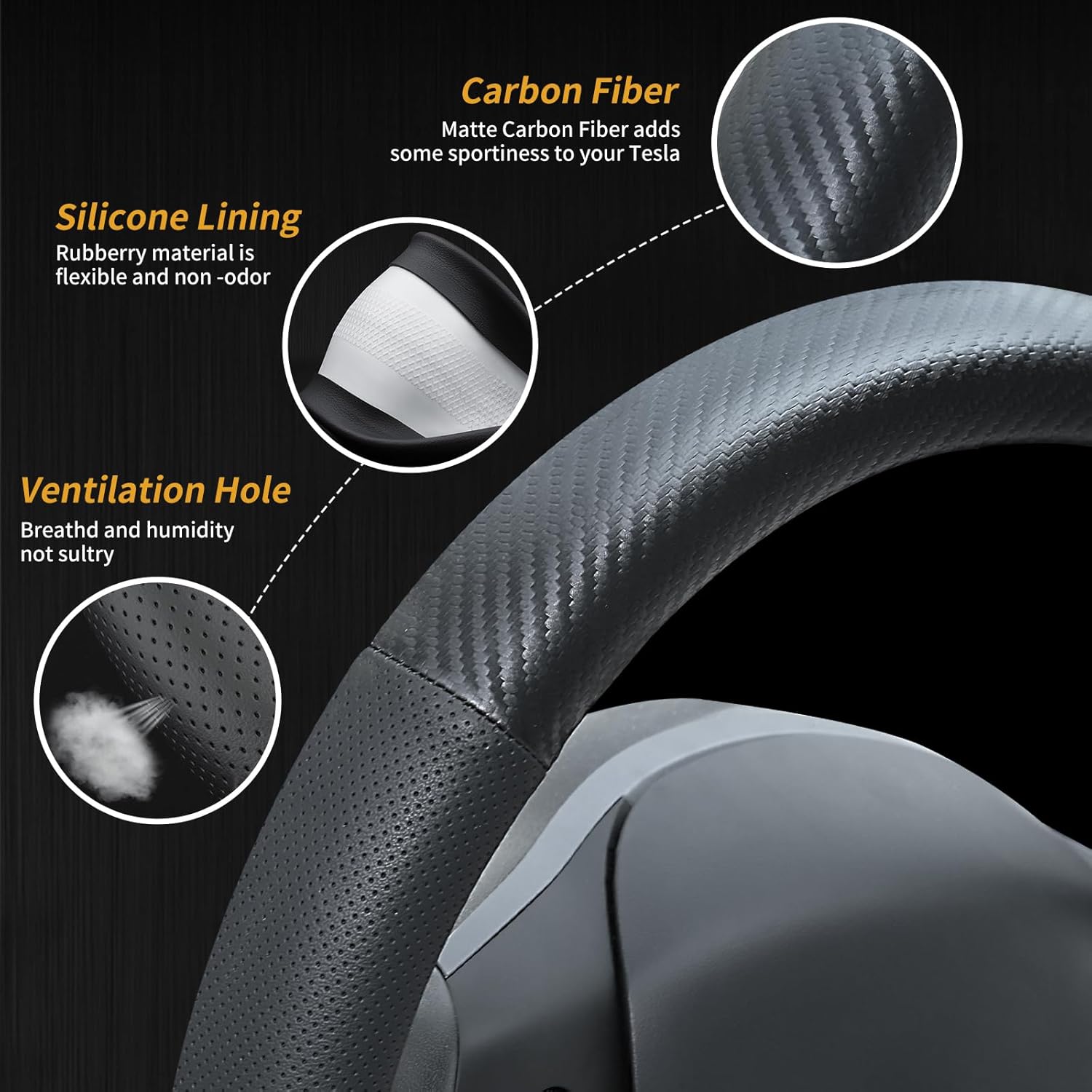 13 reviews for Carbon Fiber Leather Steering Wheel Cover for Tesla Model 3/Y 2016-2025 2026 Juniper/Highland, Non-Slip Breathable Steering Wheel Protector for Tesla Model 3/Y Accessories 2026
