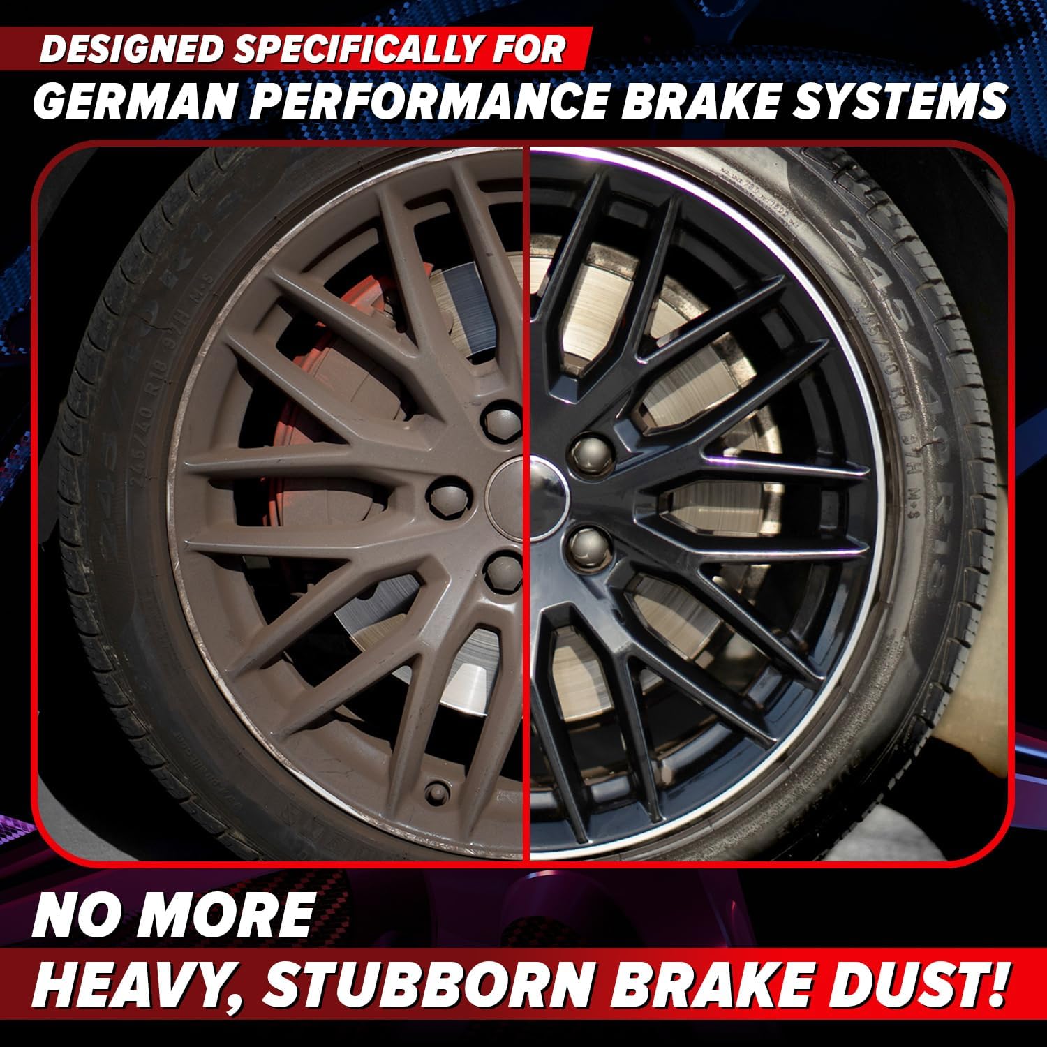 NO-SCRUB CLEANING THAT ACTUALLY WORKS – Spray on, wait 2–4 minutes, and rinse — no heavy scrubbing needed for most wheels. The formula breaks down brake dust and grime so you don’t have to. For heavily neglected wheels, light agitation may help.