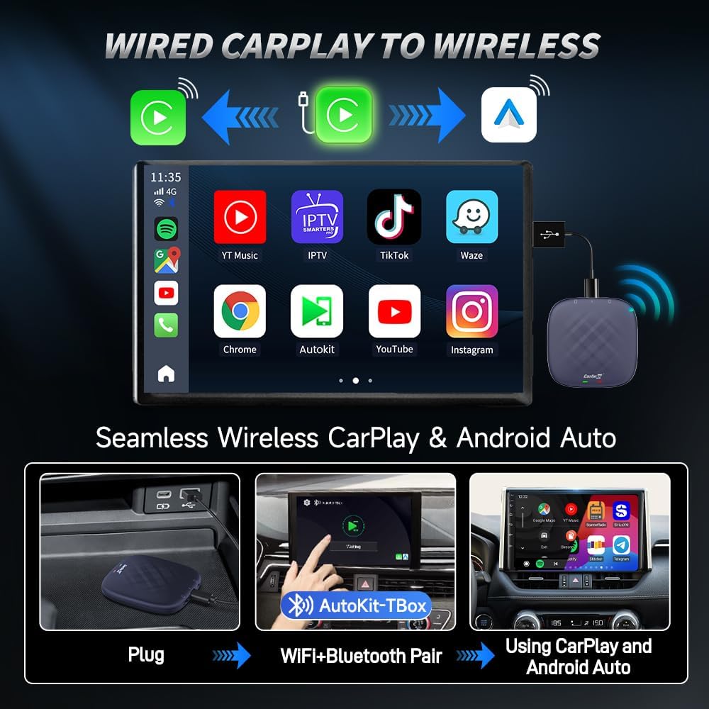 Wireless CarPlay Adapter Faster transmission: with Wi-Fi 802.11 a/b/g/n/ac, 2.4G+5G, faster transmission, Bluetooth upgrade: with 4.2 BLE + 5.0 BLE Bluetooth, connecting devices more smoothly, connecting multiple devices.