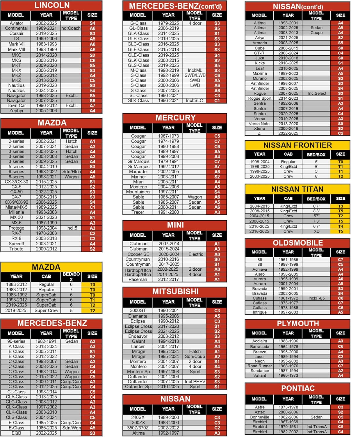 Vehicle Compatibility: Please check our size chart — Select Vehicle → Select Style → Select Year → Find Your Model.Installation Guide: Please watch our installation video and read the instruction manual before starting. This will help you complete the setup smoothly. If you encounter any issues, feel free to contact our support team at any time!Installation Notice:Installation is not recommended in windy conditions—it could blow away. For an easier and safer process, we suggest installing with two people.Note: Always ensure the cover is completely dry before storing. Storing while damp may cause odors over time.