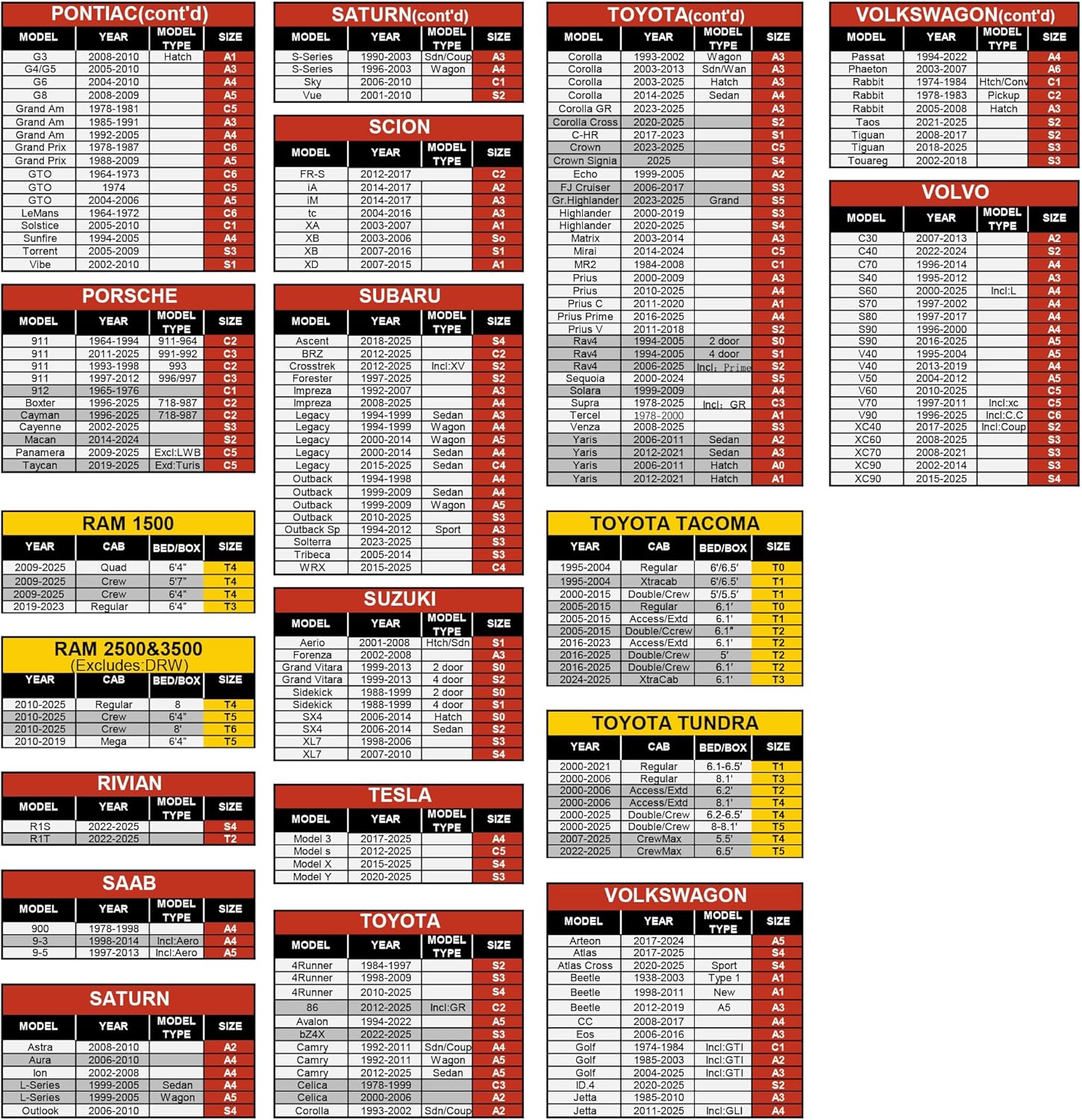 A1 Fits: Volkswagen Beetle-New/Type, Toyota Yaris-Hatch, Hyundai Accent-Hatch, Mitsubishi Mirage-Hatch, Ford Fiesta-Hatch,Toyota Tercel | More models: see size chart in main product images