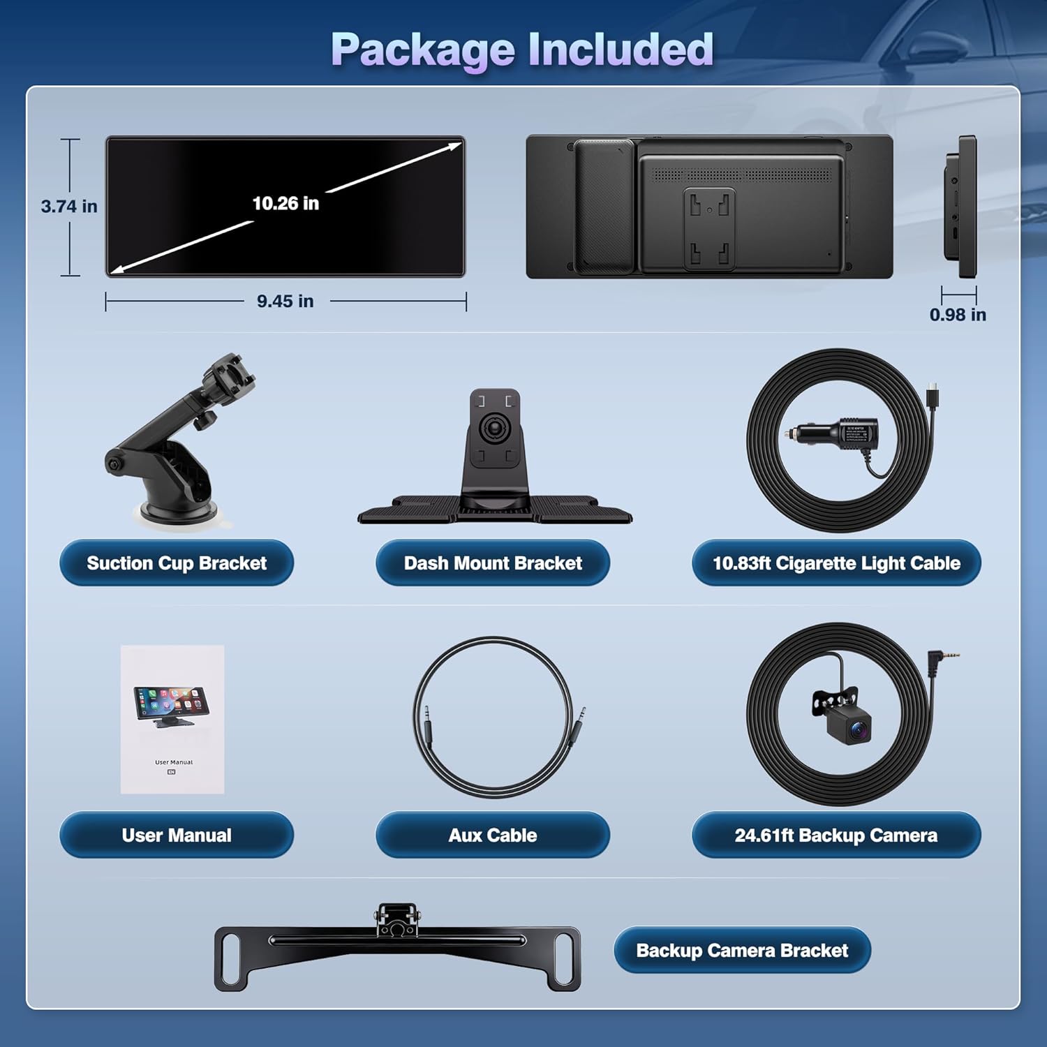【Mirror Link & Voice Control】 –This 10.26inch Carplay Screen for Car supports IOS and Android phone mirroring. Making it a media center for YouTube, and bringing more fun to driving! Control maps, calls, and apps completely hands-free with built-in Siri/Google Voice. Focus on driving while staying connected.