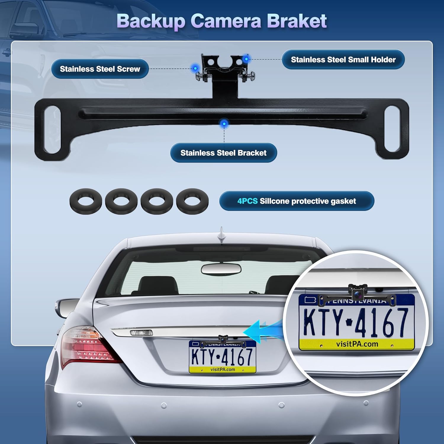 【1080P Backup Camera with Universal Bracket】 – Wireless carplay screen is equipped with a 24.61ft AHD (1080P, waterproof, and 170°viewing angle) back up camera with a universal rear camera bracket, for safe reversing in rain/fog. Automatically when shifting to reverse gear.This rear view camera bracket can be only applied to US car license plates, just need to make sure that the distance between the two screw holes of your rear camera is 13mm.