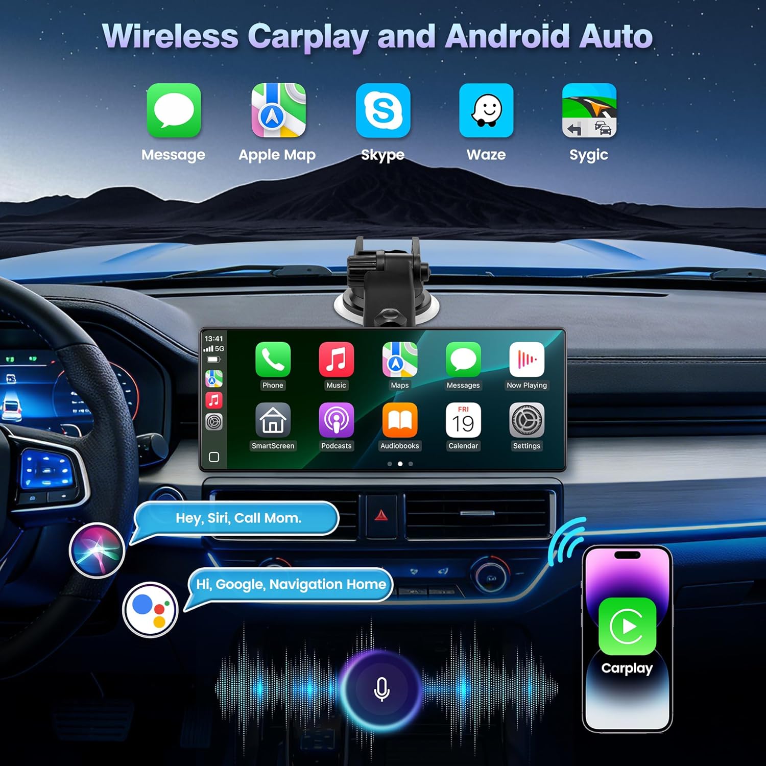 【Wireless Carplay & Android Auto】 – Instantly connect your smartphone to this car screen carplay via Bluetooth. Use Siri/Google Assistant for hands-free calls, music, and navigation without touching the car play screen. Connect the map APP on your phone, enjoy real-time information while driving.