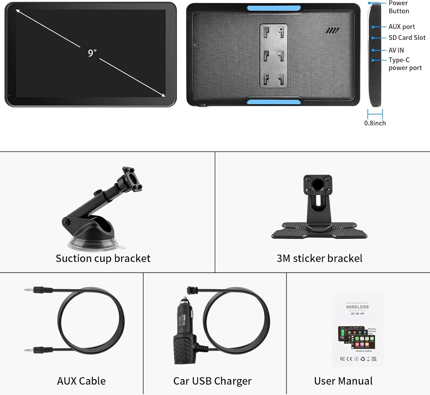 【Wireless CarPlay & Android Auto】This portable CarPlay screen supports wireless CarPlay and Android Auto, letting you easily access navigation, calls, messages, and music without cables. Enjoy hands-free control through your smartphone while staying focused on the road.
