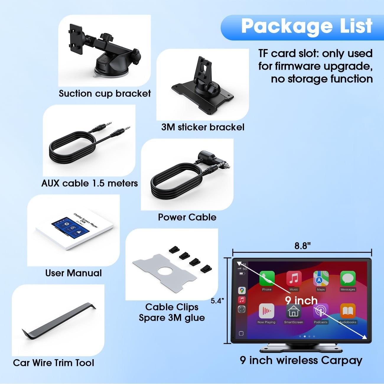 Carplay Screen for Car, 9” Wireless CarPlay & Android Auto- Upgrade Portable Touchscreen with Bluetooth, Mirror Link, Voice Control, Hands-Free Calling,Plug & Play Car Play Screen
