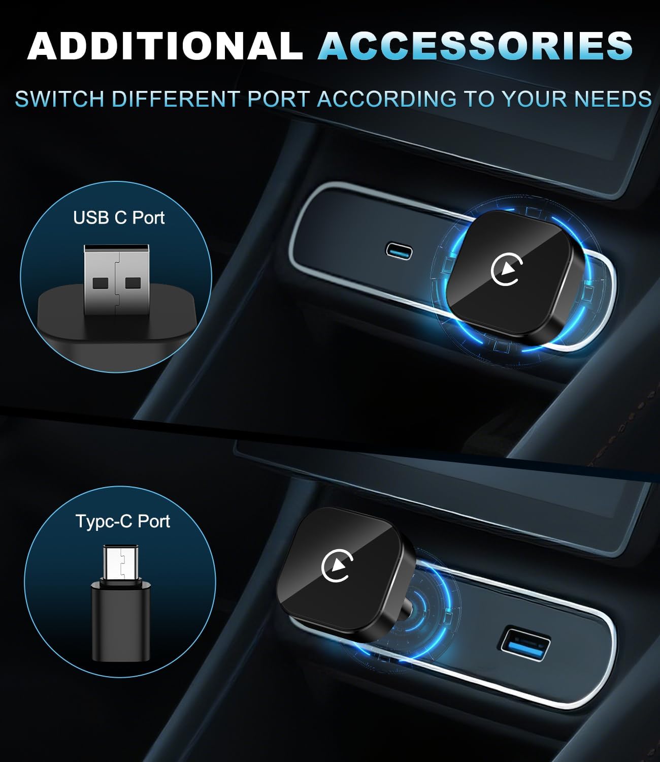 [Only for Factory-Wired CarPlay Vehicles] Not compatible with vehicles that do not already support wired CarPlay. Works with 98% of factory-installed wired CarPlay systems. Supports iPhones with iOS 10 and above. Includes both USB-A and USB-C adapters to ensure compatibility with most car USB ports.