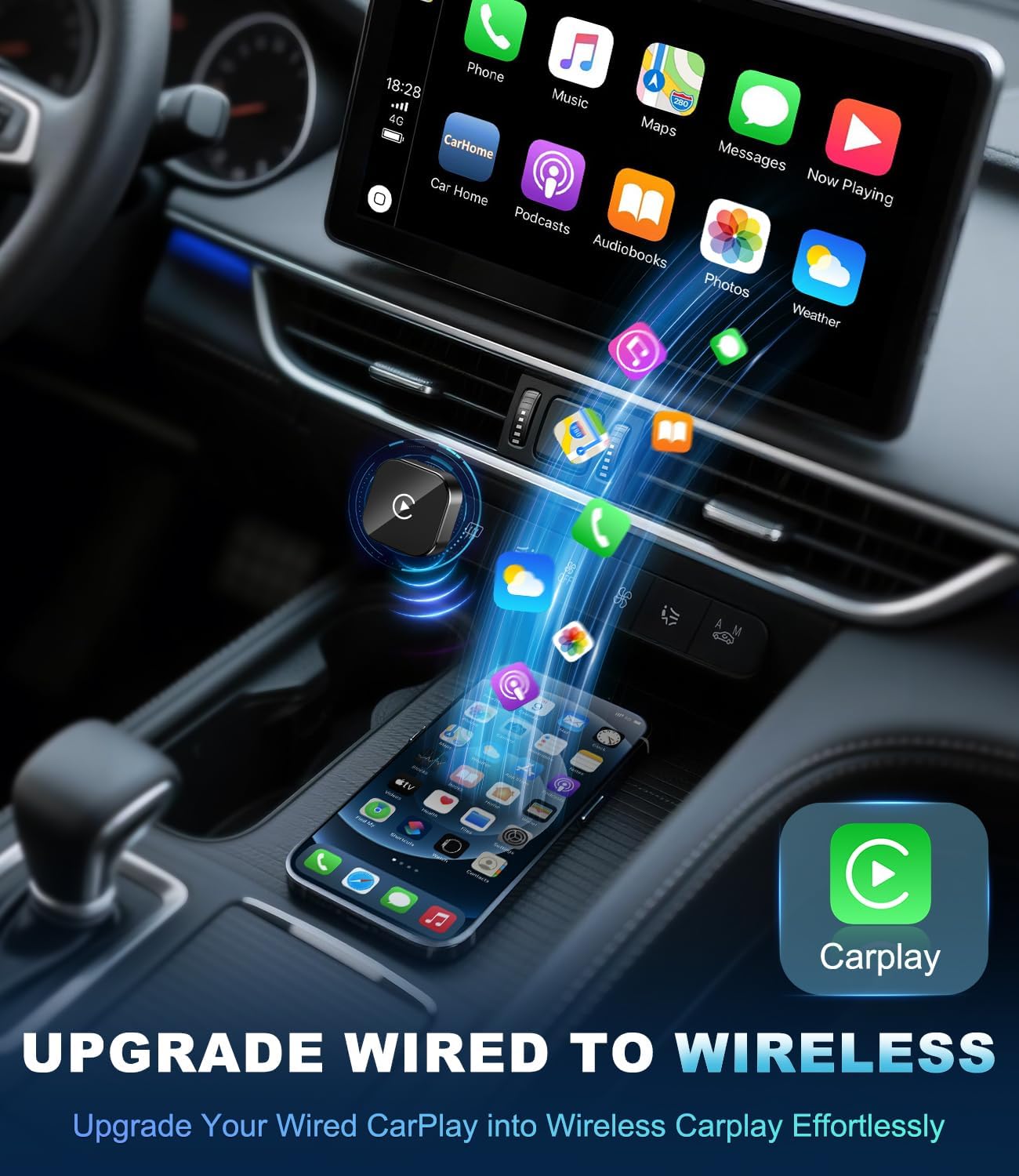 [Before You Buy] ① Vehicle Requirement – This adapter only works with cars that have built-in wired for Apple CarPlay. Please confirm your vehicle supports factory CarPlay before ordering.② iPhone Requirement – Compatible with iPhone 6 or later running iOS 10 or above.③ Settings Reminder – Make sure Wi-Fi, Bluetooth, and Siri are all turned on, and not connected to any other devices while using the adapter.④ Compatibility & Warranty – Works with about 98% of vehicles equipped with original factory CarPlay. Includes a 1-year replacement warranty and supports returns if your car is not compatible.