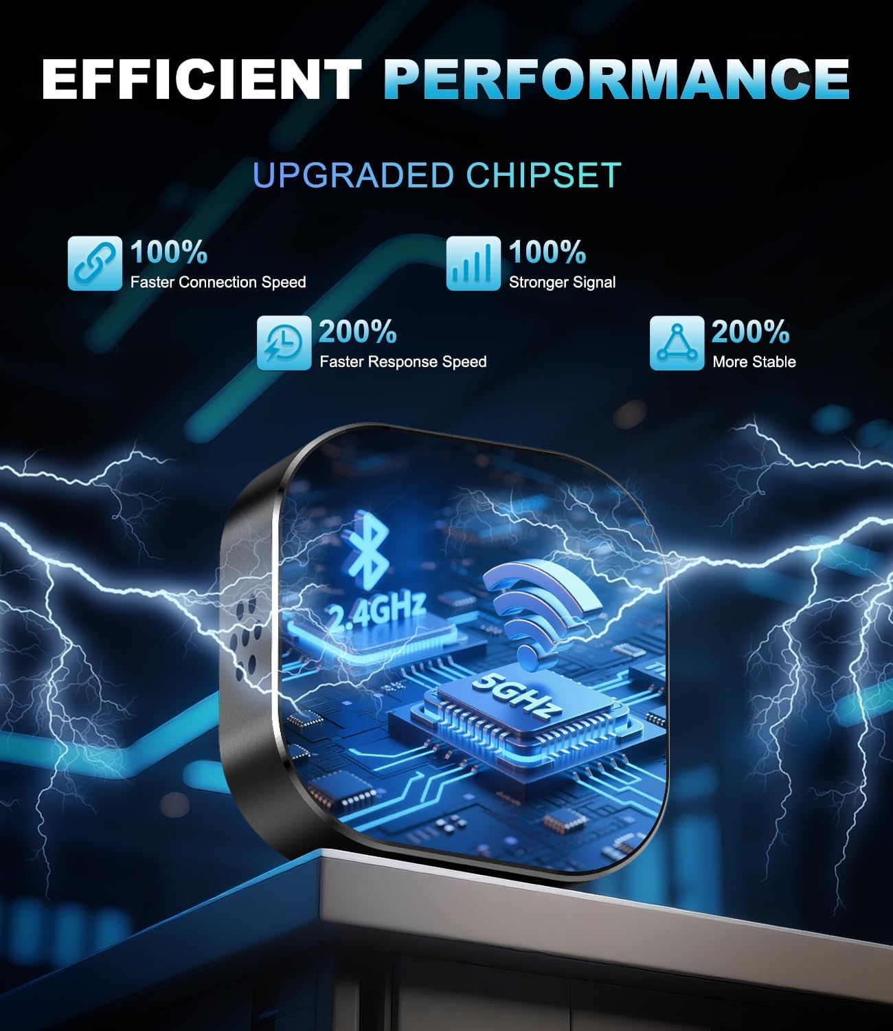 [Advanced Dual-Band Connectivity ]– Utilizing simultaneous 2.4GHz (extended range) and 5GHz (high-speed) bands, our chipset provides 100% faster data throughput versus standard adapters. Engineered to minimize packet loss (<0.1%) for lag-free audio/video sync and instant touch response in all CarPlay functions.