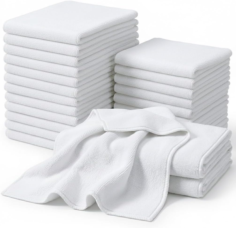 CARTMAN 14 x 14 Inch, 30 Pack, 280GSM Microfiber Cleaning Cloths, Non-Abrasive, Reusable and Washable, All Purpose Cleaning Towels for Household, Car Washing, Drying & Auto Detailing, White