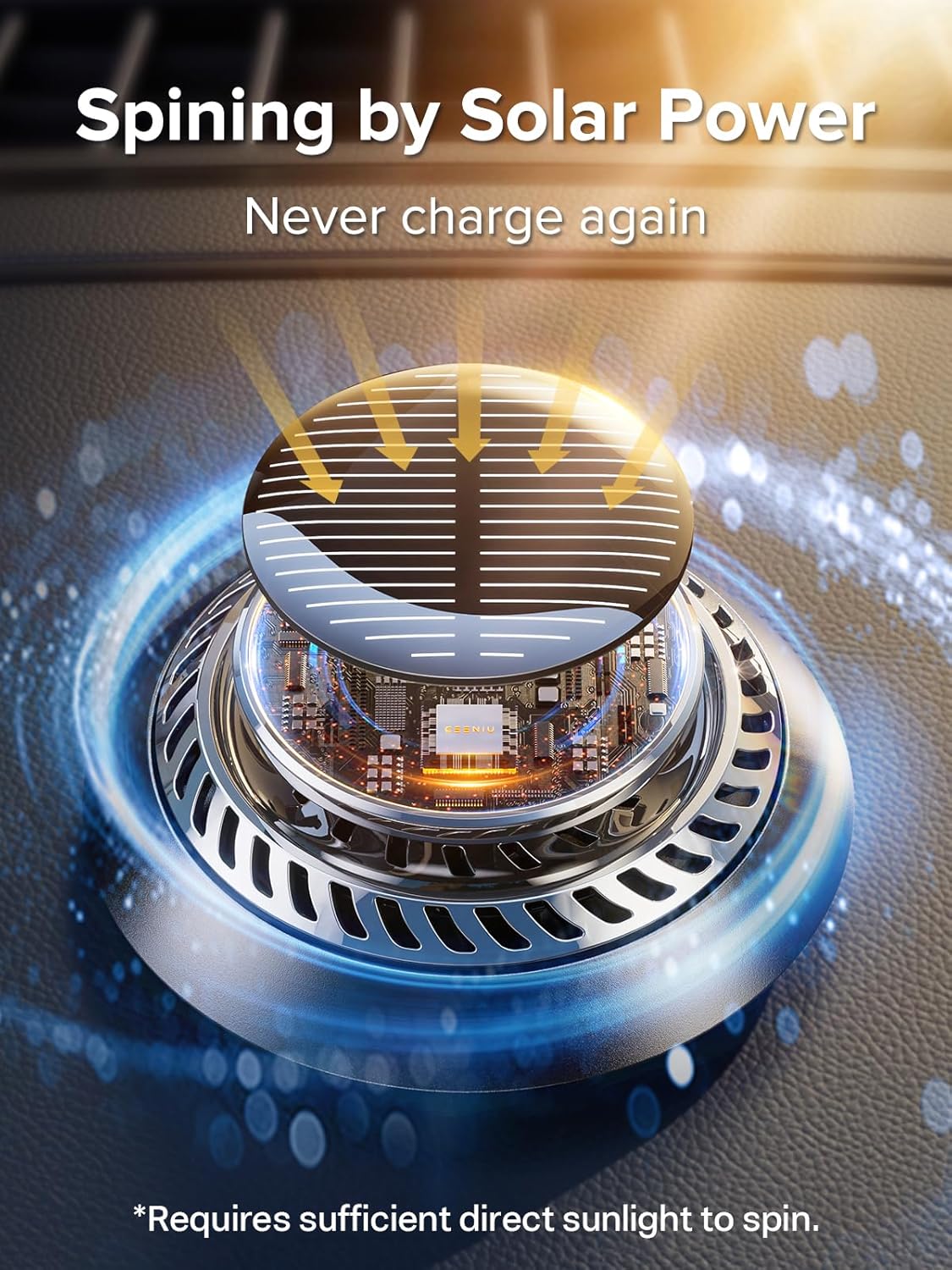 1. [Fun UFO Design & Solar-Powered] Say goodbye to batteries! Just sunlight powers the playful rotation, dispensing a delightful fragrance with Ceeniu Solar Car Air Freshener F21.