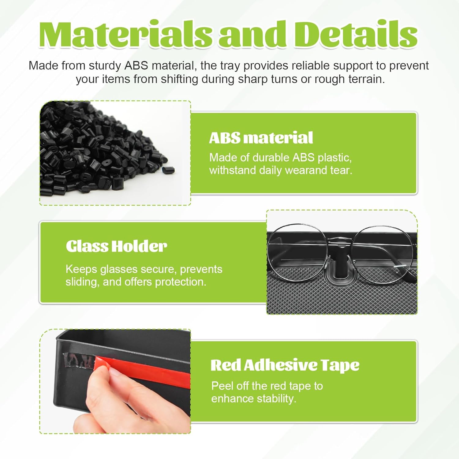 Premium Material: Made from ABS plastic with rubber mats which keep things from sliding around and rattling inside.