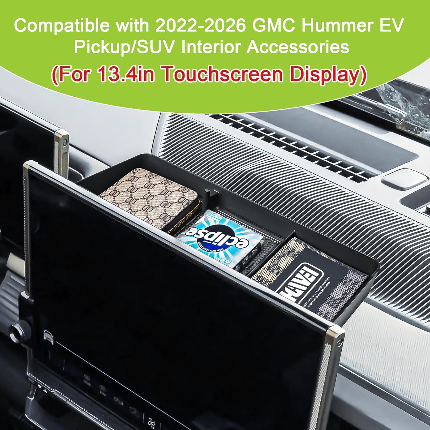 Center Console Dashboard Organizer Compatible with 2022-2026 GMC Hummer EV Pickup/SUV Interior Accessories, Armrest Dash Storage Box Insert Tray Mount Holder (for 13.4in Touchscreen Display)