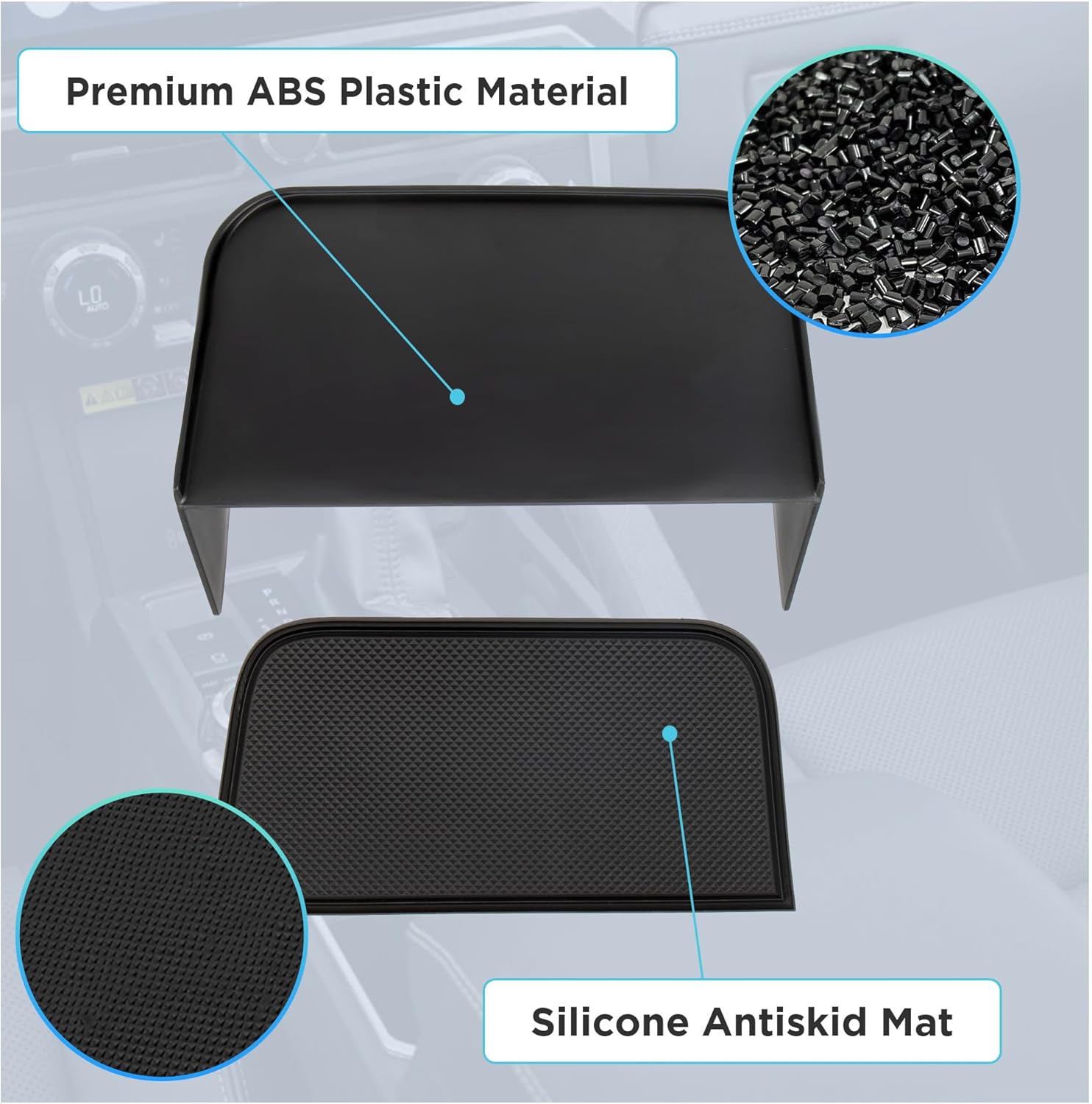 Non-Skid Design: The center console tray comes with non-skid silicone mat, anti-scratch, non-deforming, wear-resistance, and reducing noise; Silicone mat also help to minimize shifting and deliver extra security for your objects.