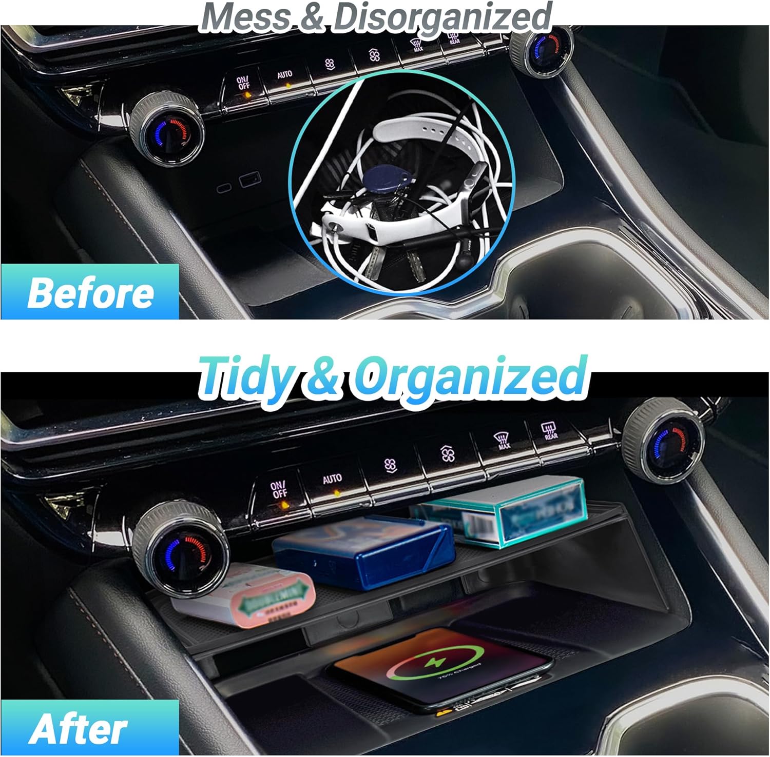 Easy to Install and Maintain: Place our storage tray on the center console—no tools needed; Its material ensures easy cleaning: simply wipe it to maintain your car’s neatness