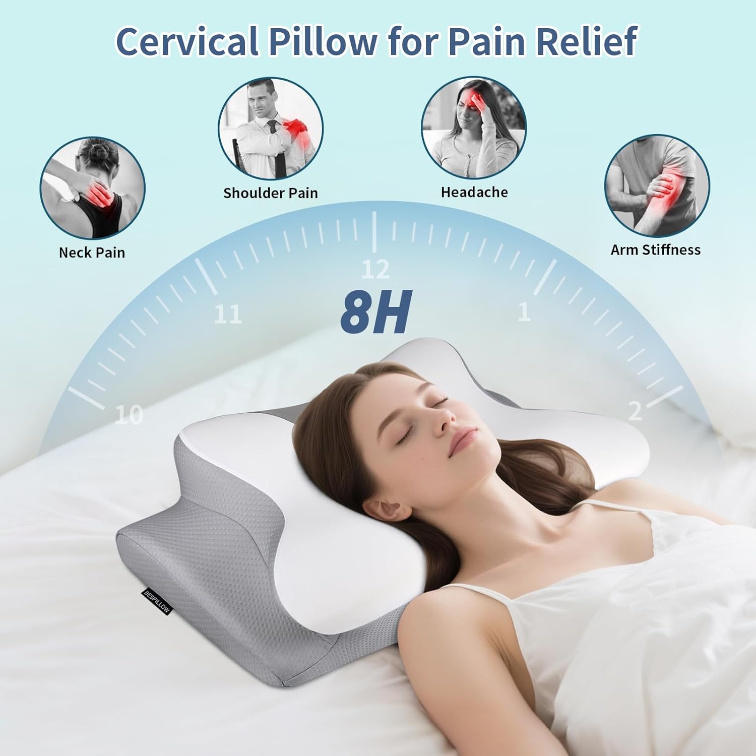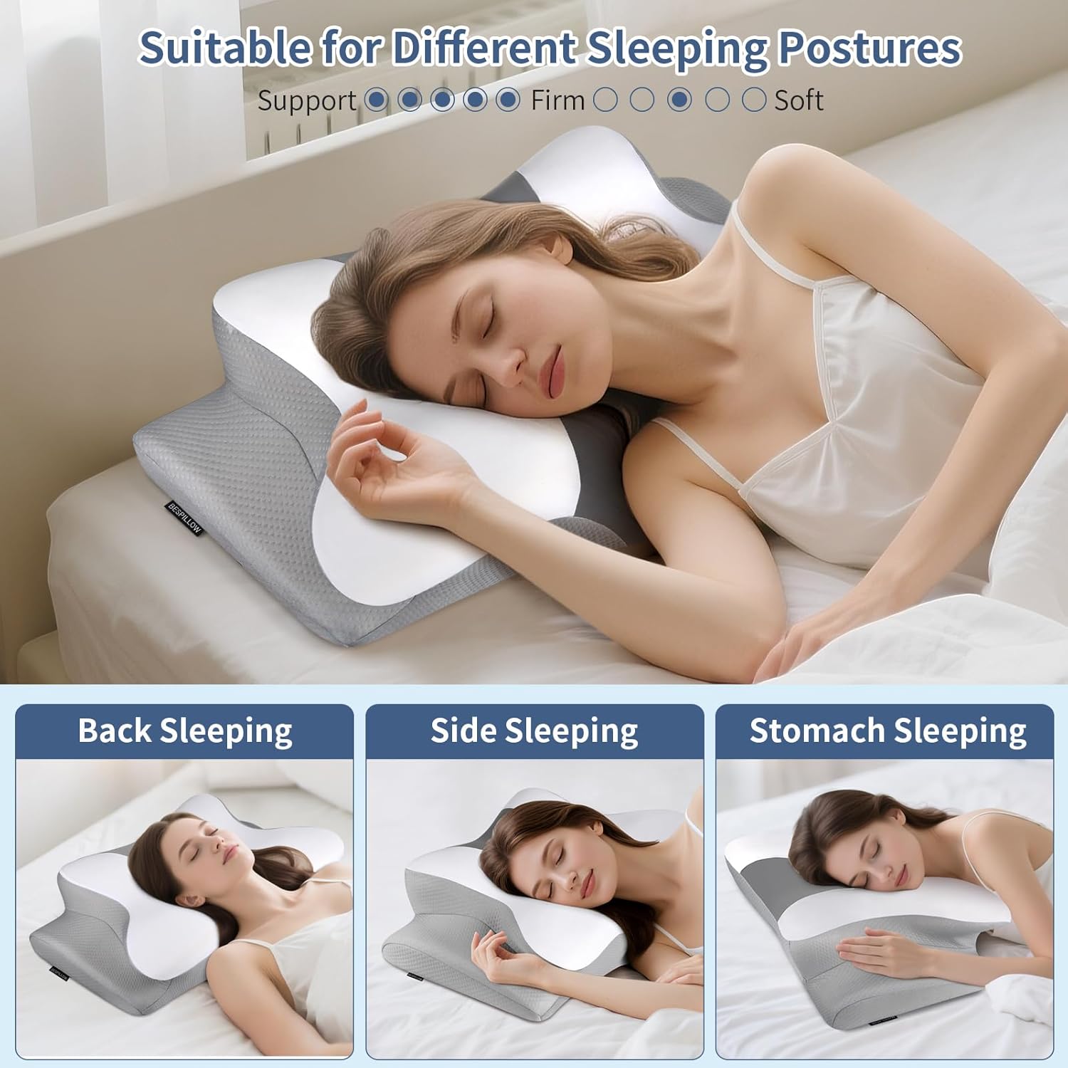[BESPILLOW CERVICAL PILLOW REDEFINE YOUR NIGHTLY REST] Tired of stiff neck & restless nights? Our side sleeper pillow stops tossing and turning for deeper sleep, easing neck discomfort, optimizing sleep posture and delivering targeted pressure relief—backed by thousands of buyer. With a 100% full refund guarantee, it’s the perfect gift for sleep health lovers. Note: The neck pillow Not a medical device, for general neck support only. If you have sleep disorders, please consult your doctor.