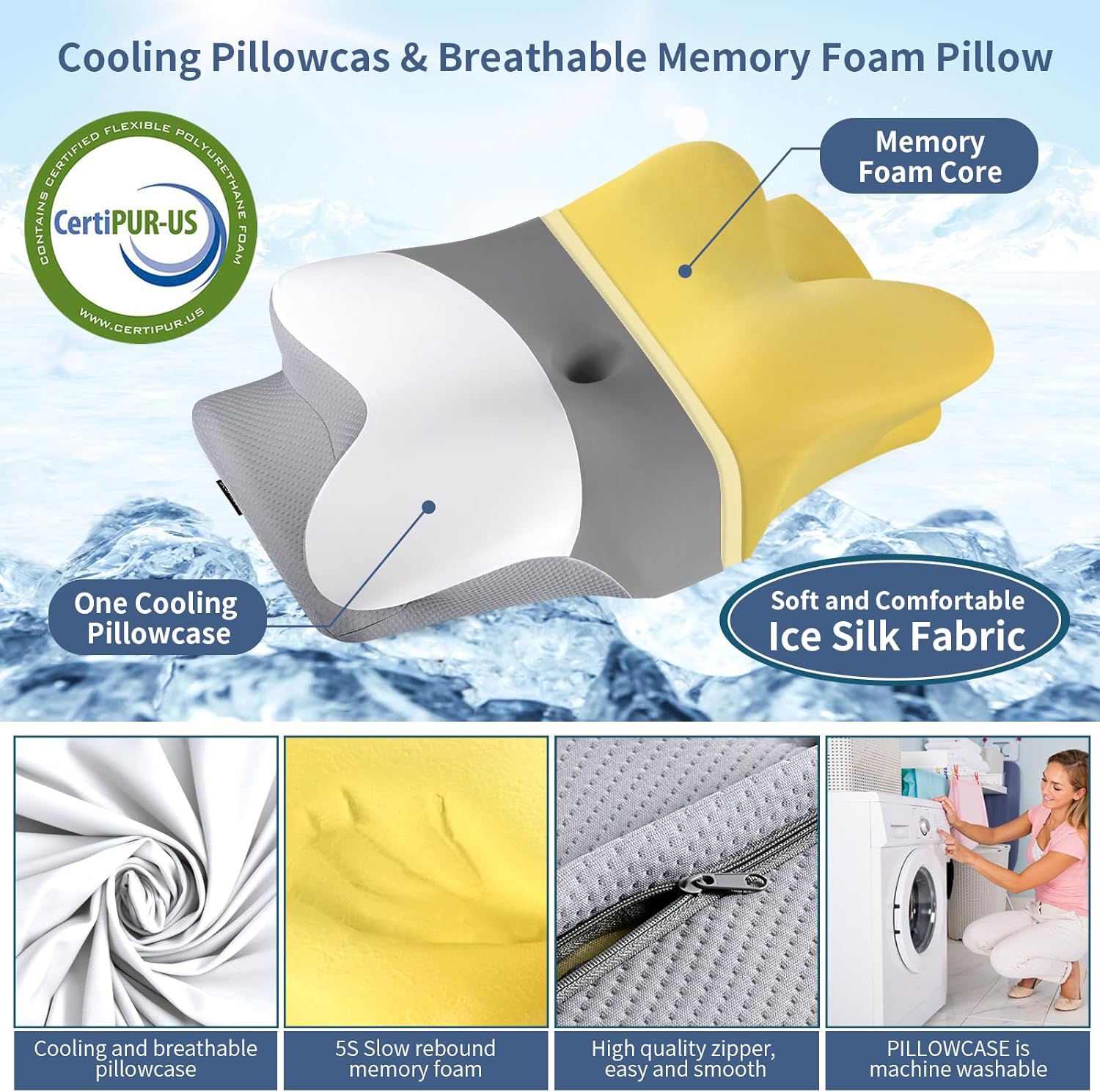 [COOL NIGHT SLEEP, BREATHABLE WASHABLE COVER] Bespillow ergonomic neck pillow comes with a 3-layer premium stretch pillowcase that fits the core perfectly. Equipped with a durable zipper for easy removal, this cooling pillow cover is machine washable for effortless care and long use. Made of a soft cotton-polyester blend, the skin-friendly fabric is breathable and moisture-wicking, keeping you cool, dry and sweat-free all night for a restful, comfortable sleep!