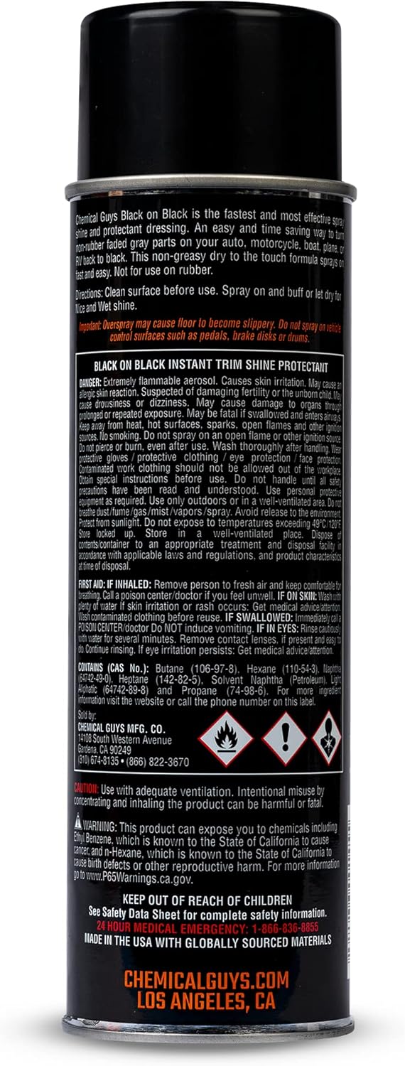 Chemical Guys AIR_SPRAY_1 Black On Black Instant Trim Shine Exterior Spray Dressing & Protectant, (Safe for Cars, Trucks, SUVs, RVs, & More) 11 fl oz