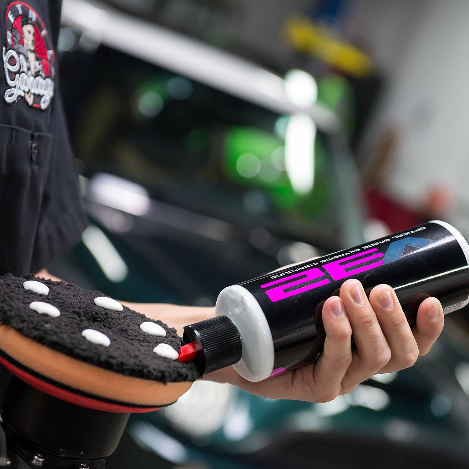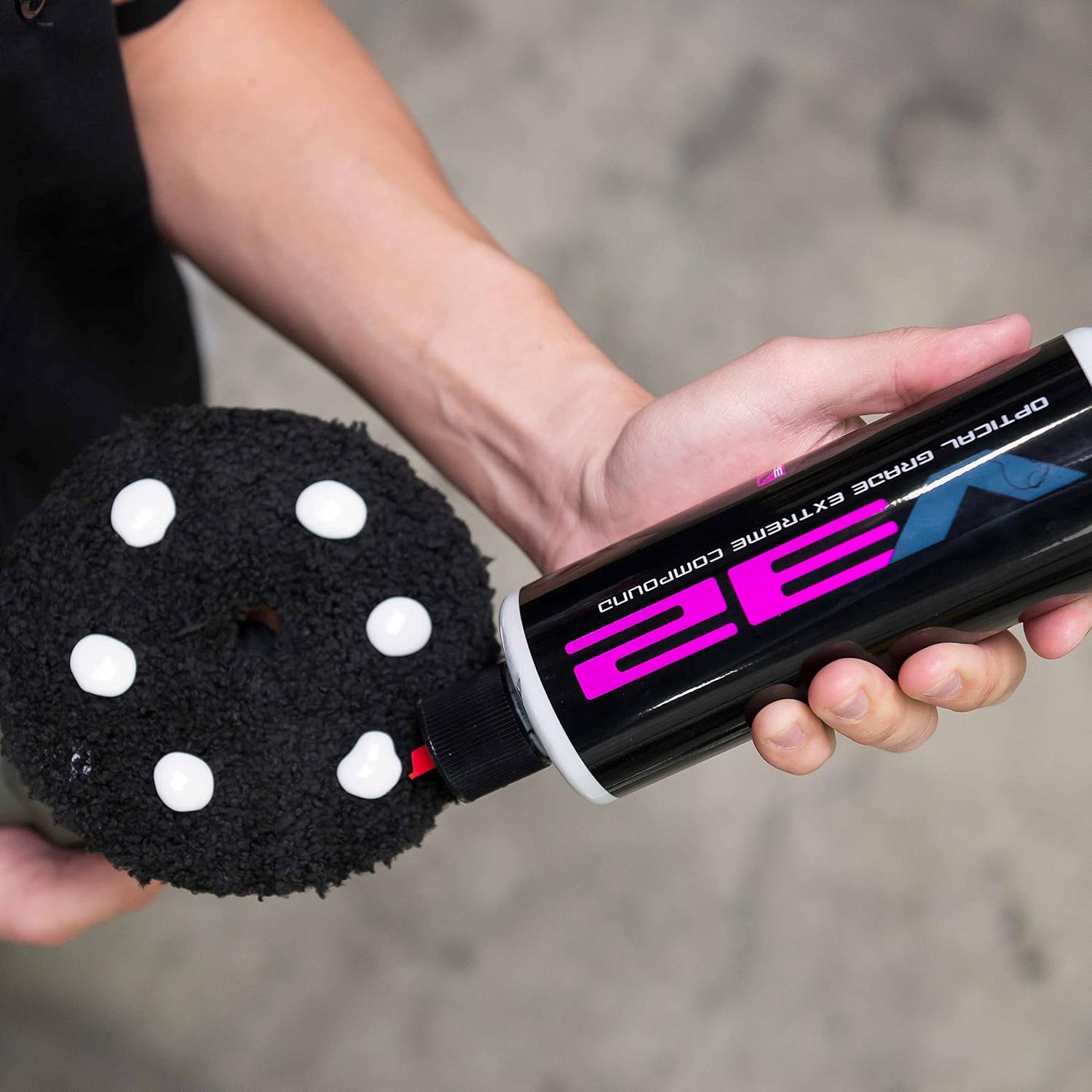 The V32 Optical Grade Extreme Compound is the first optical grade extreme compound designed with advanced technology to eliminate the most extreme paint defects and imperfections. V32 is developed for fast cutting capabilities utilizing optical grade micro abrasive technology to restore older paints and polish newly painted surfaces. The advanced compound is designed to cut through heavy paint imperfections for precision results. V32 is an ultra refined extreme compound designed to remove extreme paint defects while preparing the surface for the final steps of polishing. Formulated specifically for extended work time, V32 extreme compound is the first water-based OEM approved compound engineered to remove heavy paint imperfections and defects permanently from scratch-resistant and ceramic clear coat without filling in or covering up. Optical grade micro abrasives rapidly eliminate imperfections and remove 1200-1500 grit sanding scratches and swirls. V32 delivers fast cutting power with fewer passes to quickly restore your vehicle’s finish and is equally effective on both ceramic finishes and conventional clear coats.V32 delivers the finest results with unmatched optical clarity. Designed to function without oils, silicon’s or fillers, V32 maximizes efficiency by optimizing work time to deliver perfect results. Paint technology is one of fastest growing segments of the automotive industry. In the past several years, vehicle manufactures have begun to incorporate advancements in paint technology such as ceramic clear coat and water based paints to give owners the best possible paint coating that lasts longer than ever imagined. The new advancements in scratch-resistant and ceramic clear coats have changed the way professionals and enthusiasts maintain the integrity of their painted finish. Scratch-resistant and ceramic clear coats are designed to last much longer than conventional clear coat systems by resisting scratches and defects in most situations.